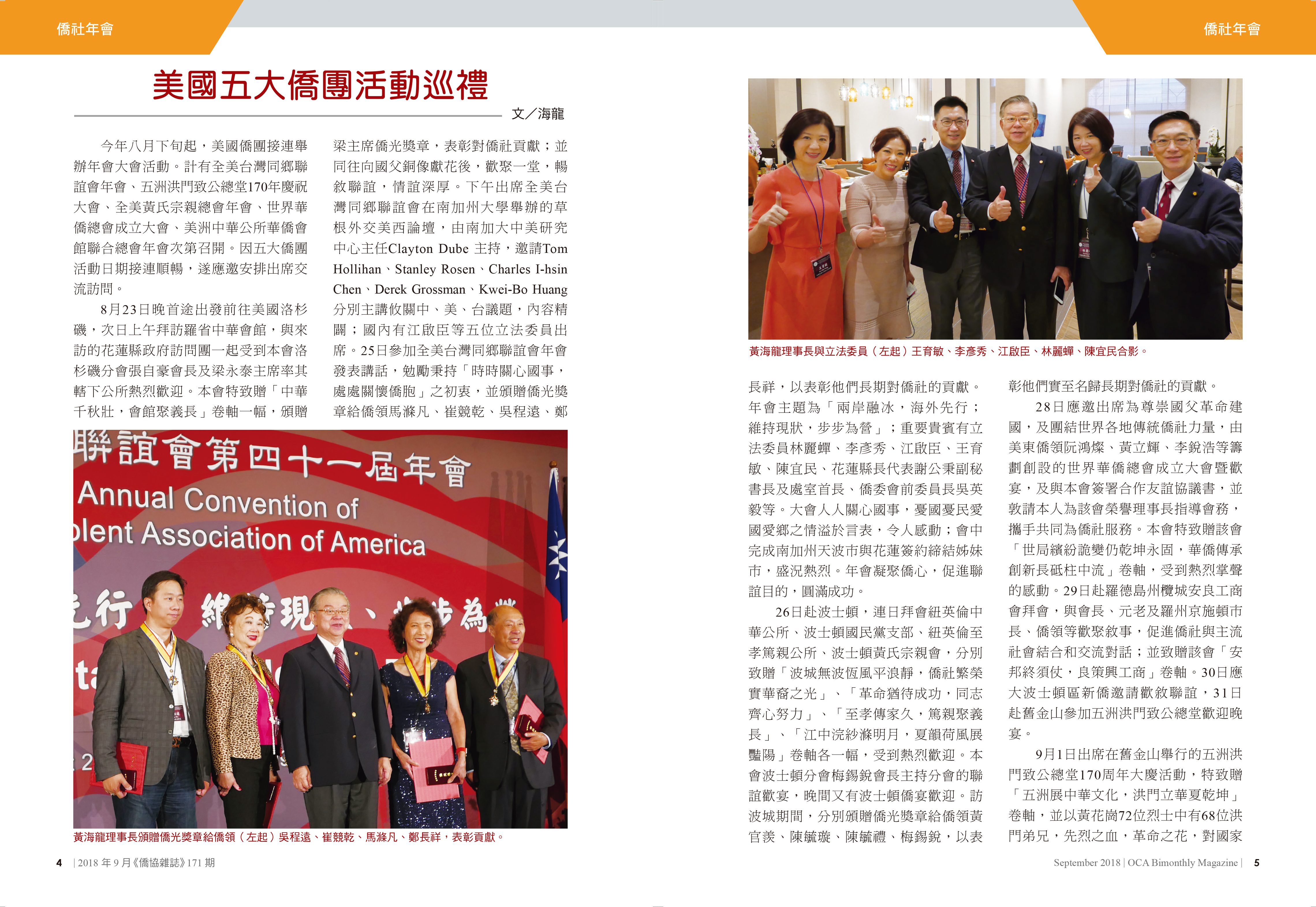 頒發全美台聯會及美洲聯誼會僑光獎章
