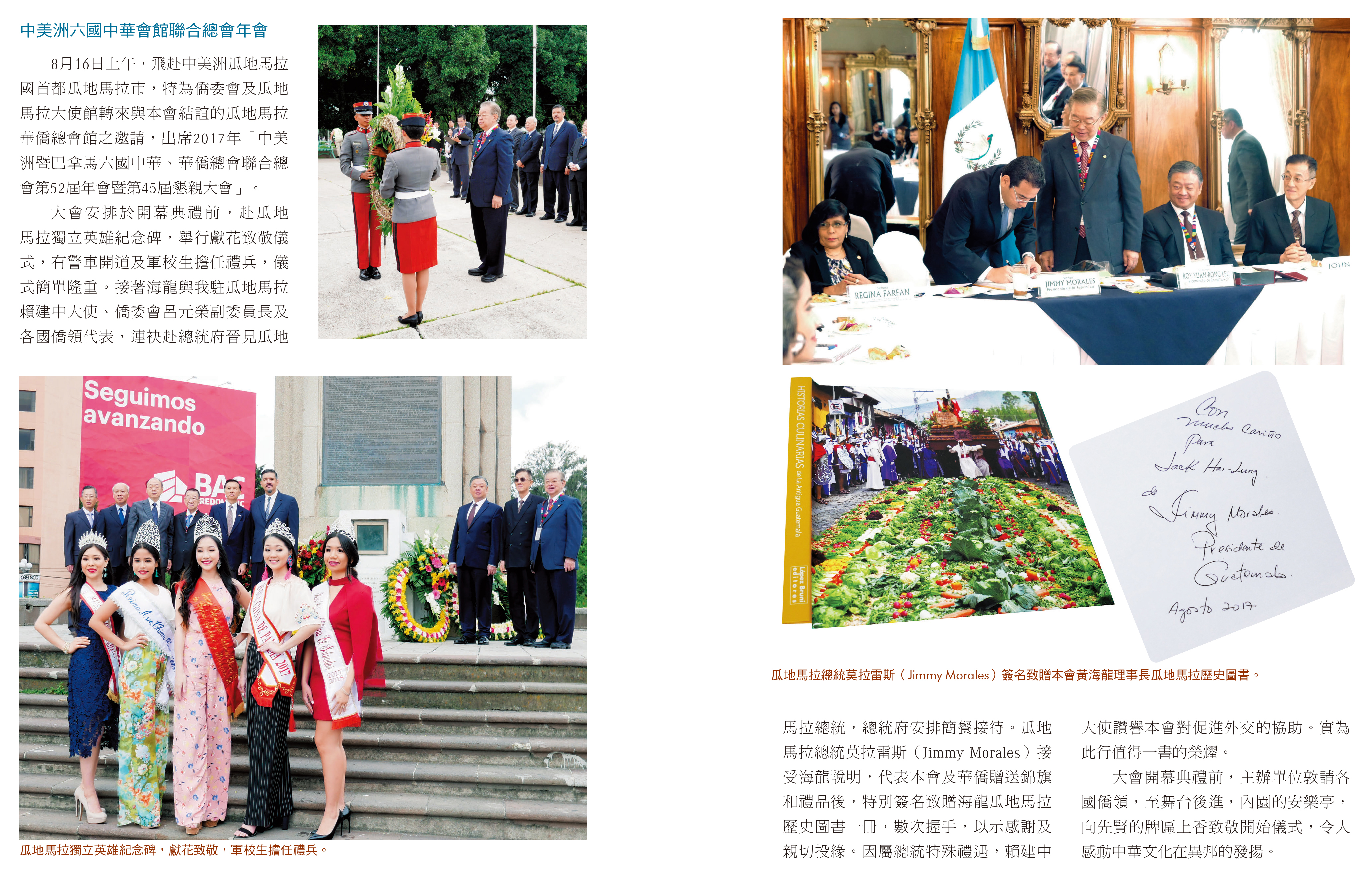 應瓜地馬拉華僑總會館之邀請,出席2017年「中美洲暨巴拿馬六國中華、華僑總會聯合總會第52屆年會暨第45屆懇親大會」。