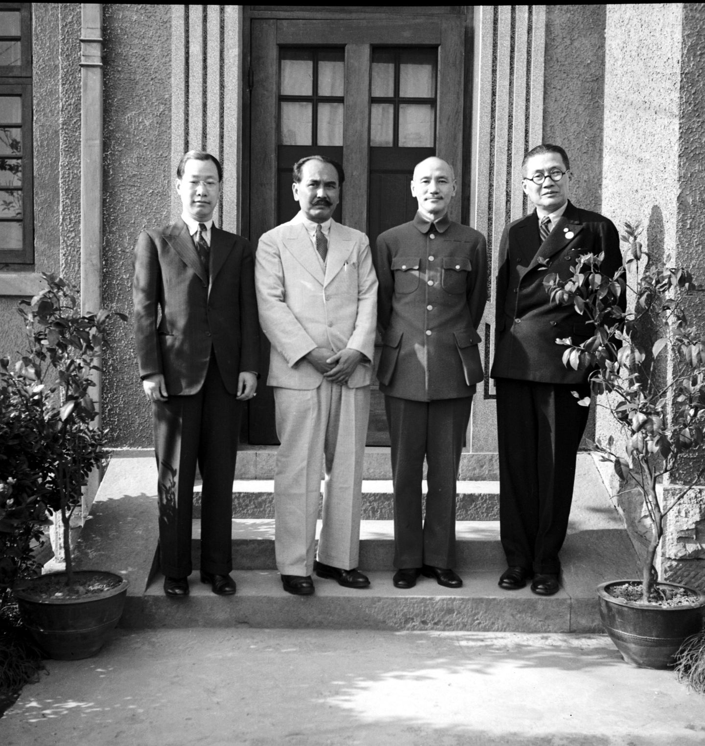 二十九年四月一日南洋僑胞陳清虎謁蔣中正委員長 右起吳鐵城、蔣中正、陳清虎