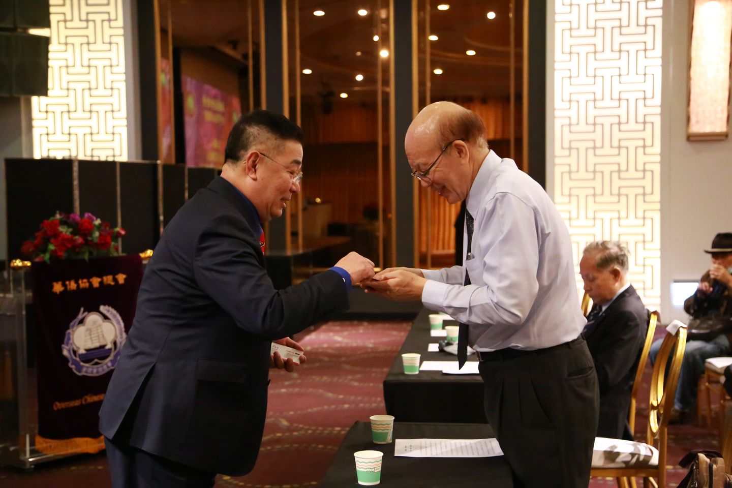 演講畢,林理事長致贈本會小會旗以表謝忱。