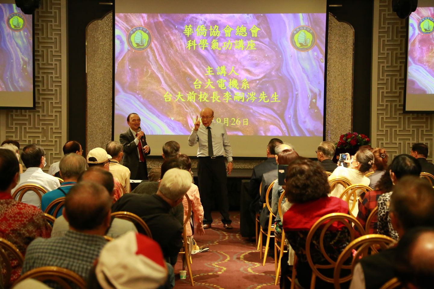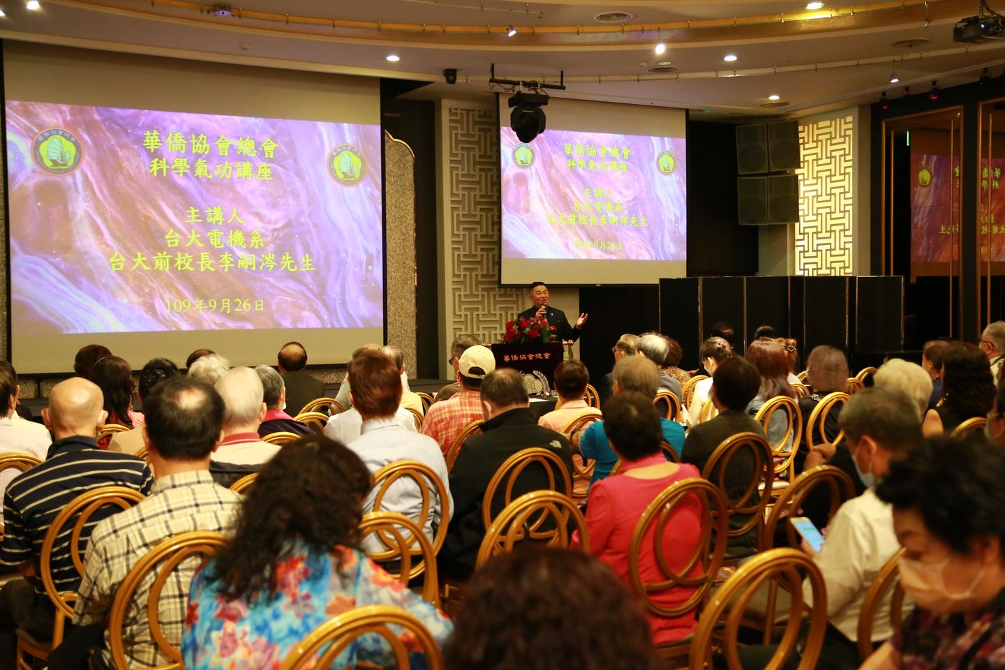 109年9月26日,本會舉行中秋節會員聯歡會之前,特別邀請台大前校長李嗣涔教授主講〈氣功科學〉,會員一百餘人出席,會場滿座。