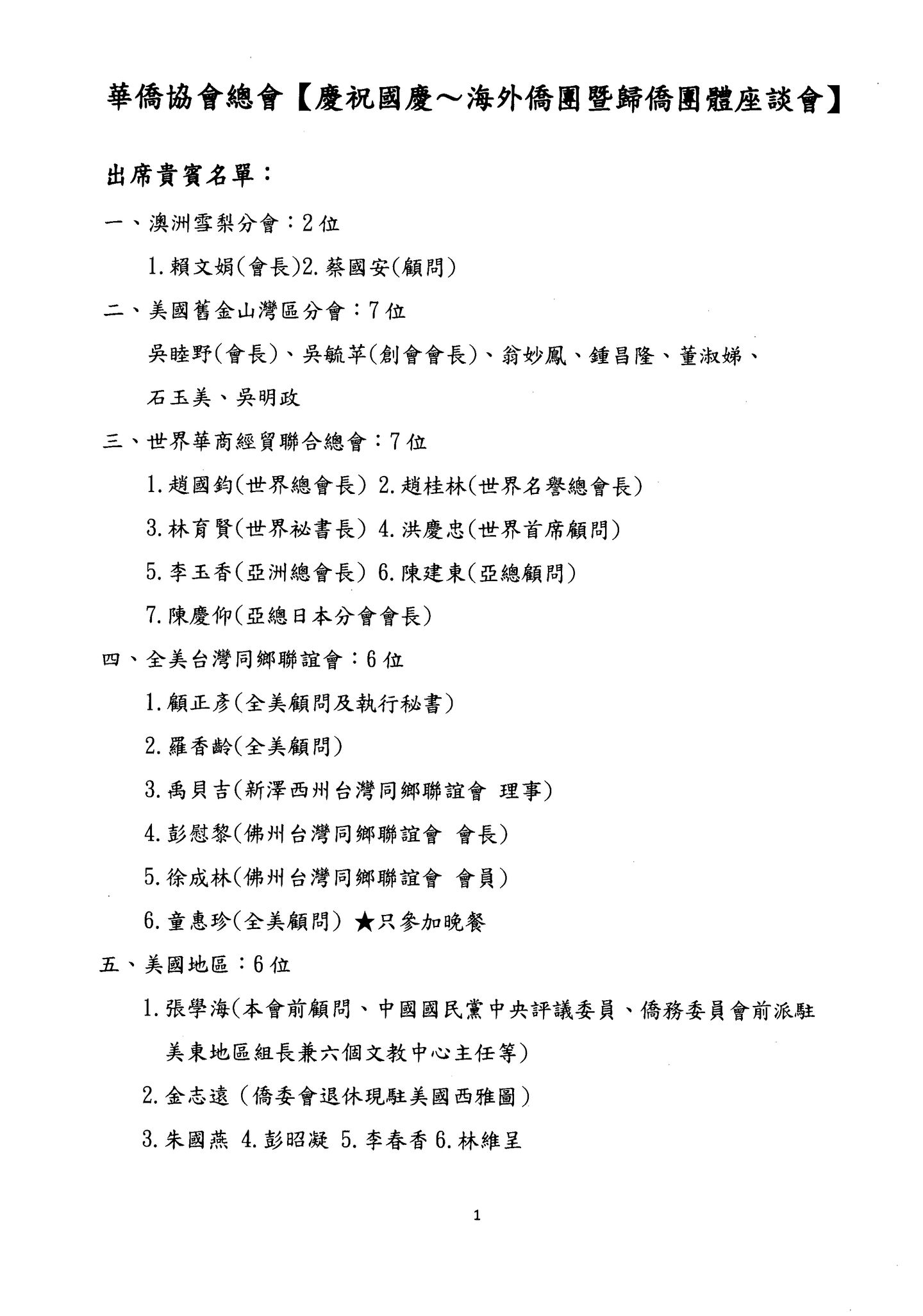 為表達本會對返國僑胞敬意,本會特訂於109年10月7日假會議室舉行「 慶祝國慶〜海外僑團暨歸僑團體座談會」,五十餘位嘉賓出席,林齊國理事長主持。