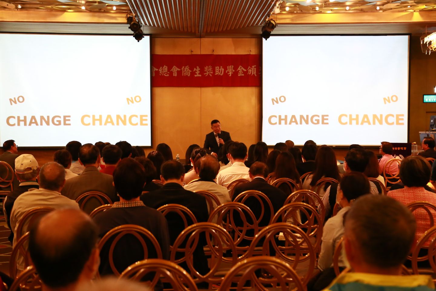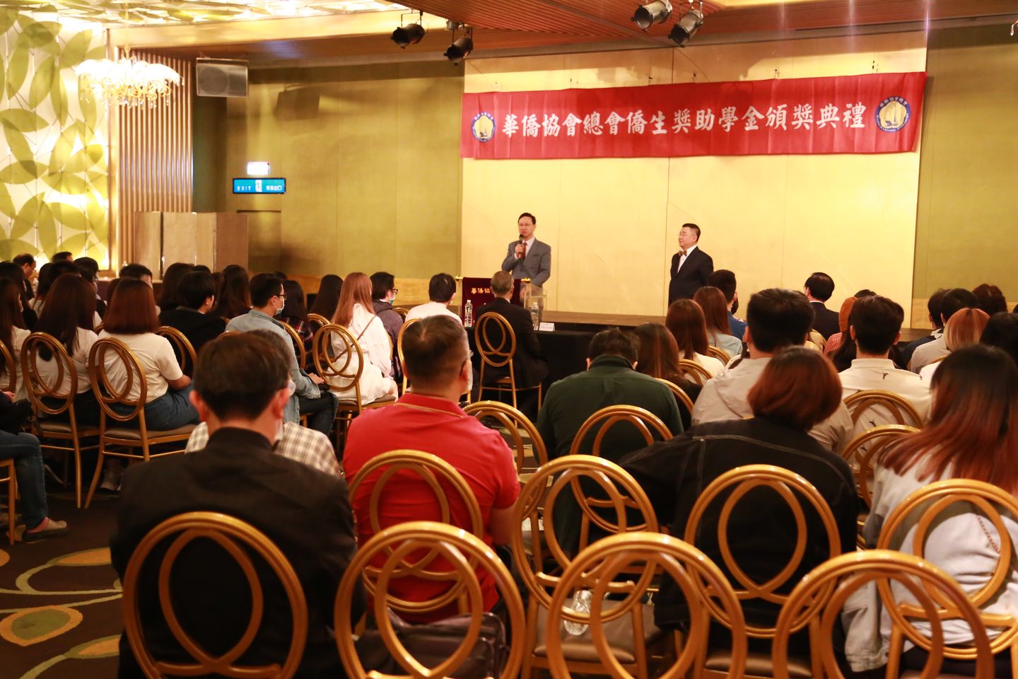 僑生獎助學金頒獎典禮,計有獲獎僑生61位及理監事、會員等一百五十餘位出席。司儀蘇靖雯秘書長洪聲道出頒獎典禮開始,首由本會僑生獎助學金審查委員會召集人趙麗屏常務理事致歡迎詞,再由林齊國理事長專題講座「CHANCE」鋪陳全場,復請僑務委員會童振源委員長致詞勉勵,尾聲以團體合照為今日頒獎典禮劃下終曲。