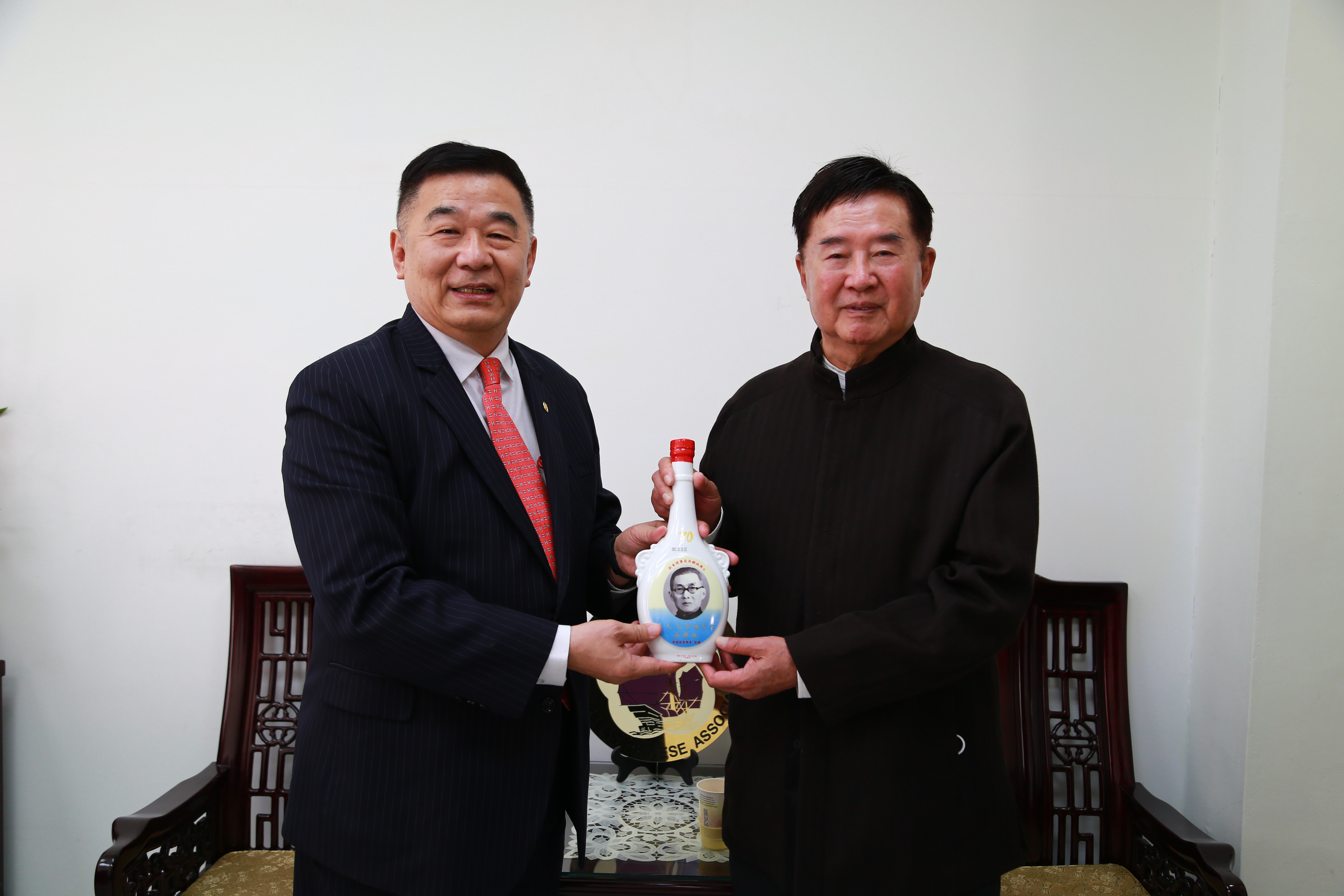 結束拜訪前,林理事長致贈夏理事長本會創會七十周年紀念酒及僑協雜誌。