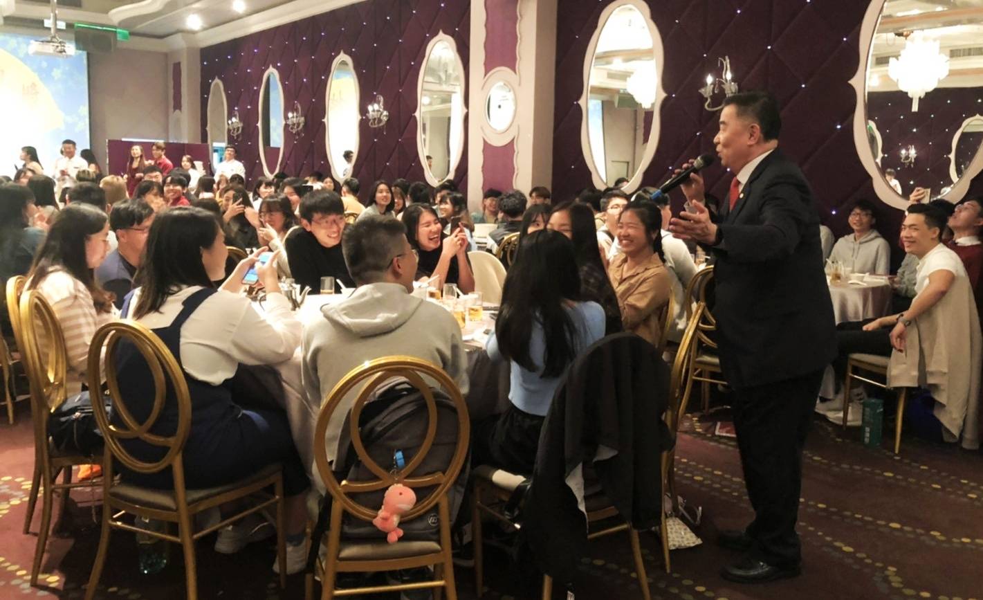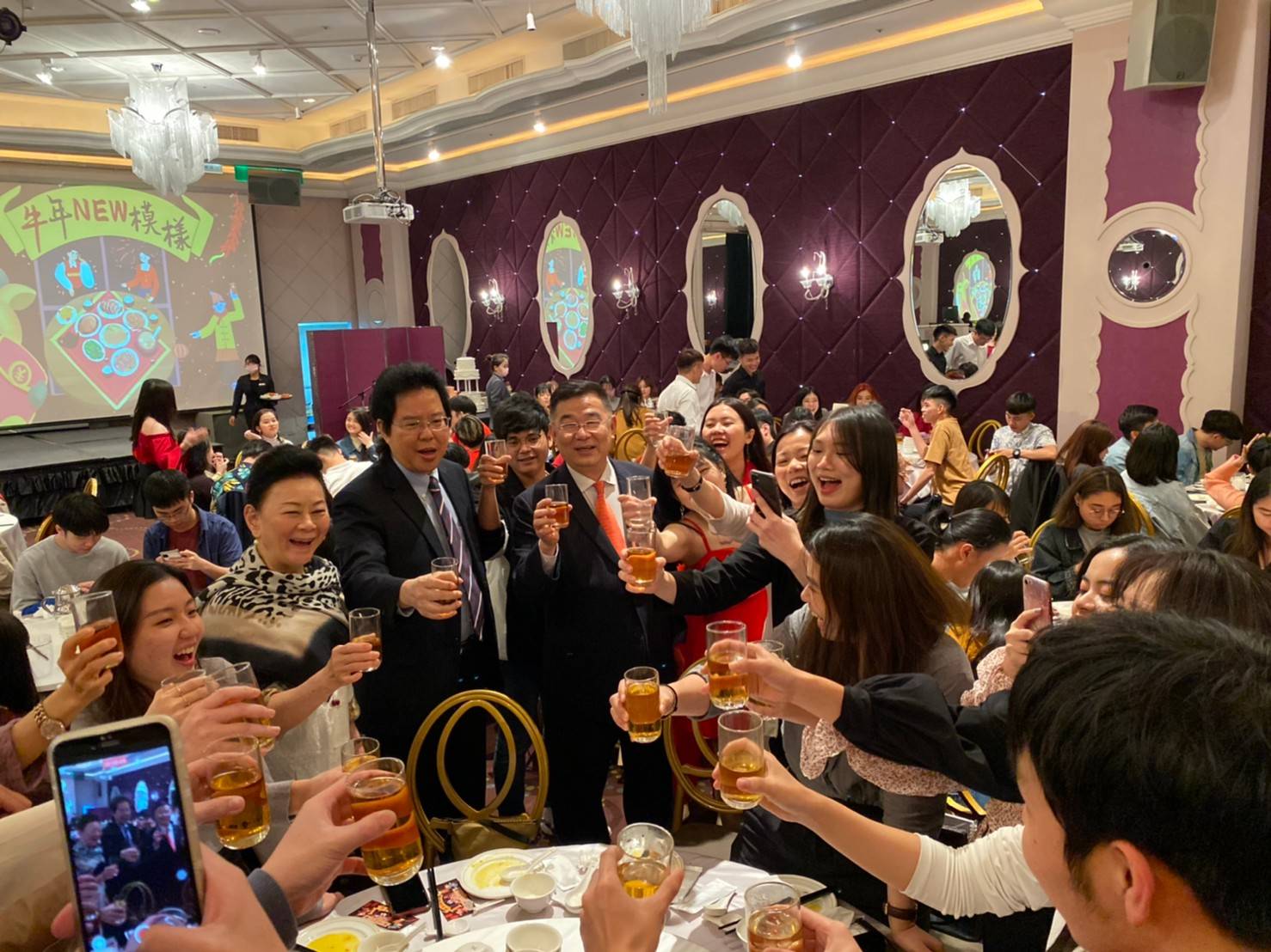 林理事長以牛的勤奮不懈,勉勵僑生扭轉乾坤,為自己的職涯創造利基。同時致贈數個大紅包為餘興摸彩助興,頒發幸運獲獎僑生,祝福大家未來一年裡,一路紅到年尾。