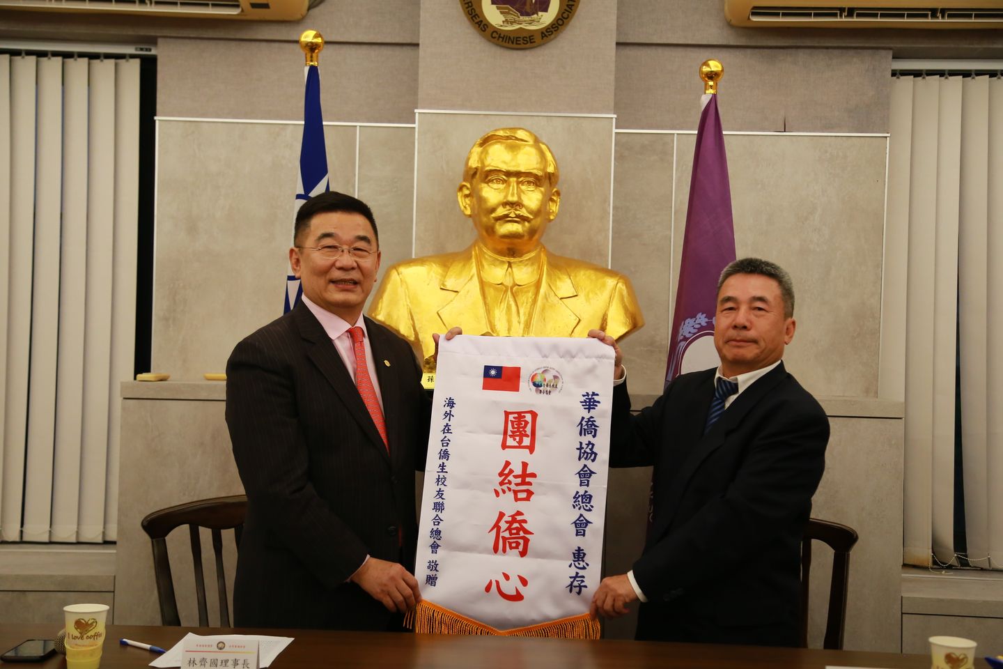 110年3月19日,海外僑生在臺校友聯合總會李沛總會長偕同緬甸在台校友聯誼會、緬甸腊戍果文中學旅臺校友會李孝富會長、緬甸密支那育成學校在臺校友會楊名權理事長、果邦學校臺灣校友會尹可旭理事長、中正校友會張明輝會長、孔教校友會吳金仁理事長、果強留臺校友會楊鴻蒼理事長、泰國師大校友會黃安美會長、泰北美斯樂興華中學校友會唐雲飛會長、泰北回鵬在台校友會石尚豪會長、泰北滿星疊大同中學旅台校友會黃時錦會長、馬來西亞馬六甲培風中學臺灣校友會顏名蔚理事長、巴生興華中學台灣校友會陳少山理事長、越南在台僑生校友會黎愛珍會長、寮國在台僑生校友會黃植生理事長、高棉在台僑生校友會吳鴻發會長、印尼在台大專同學會陳良光理事長、韓國留臺校友會劉美燕理事長及幹部等五十餘人蒞訪。