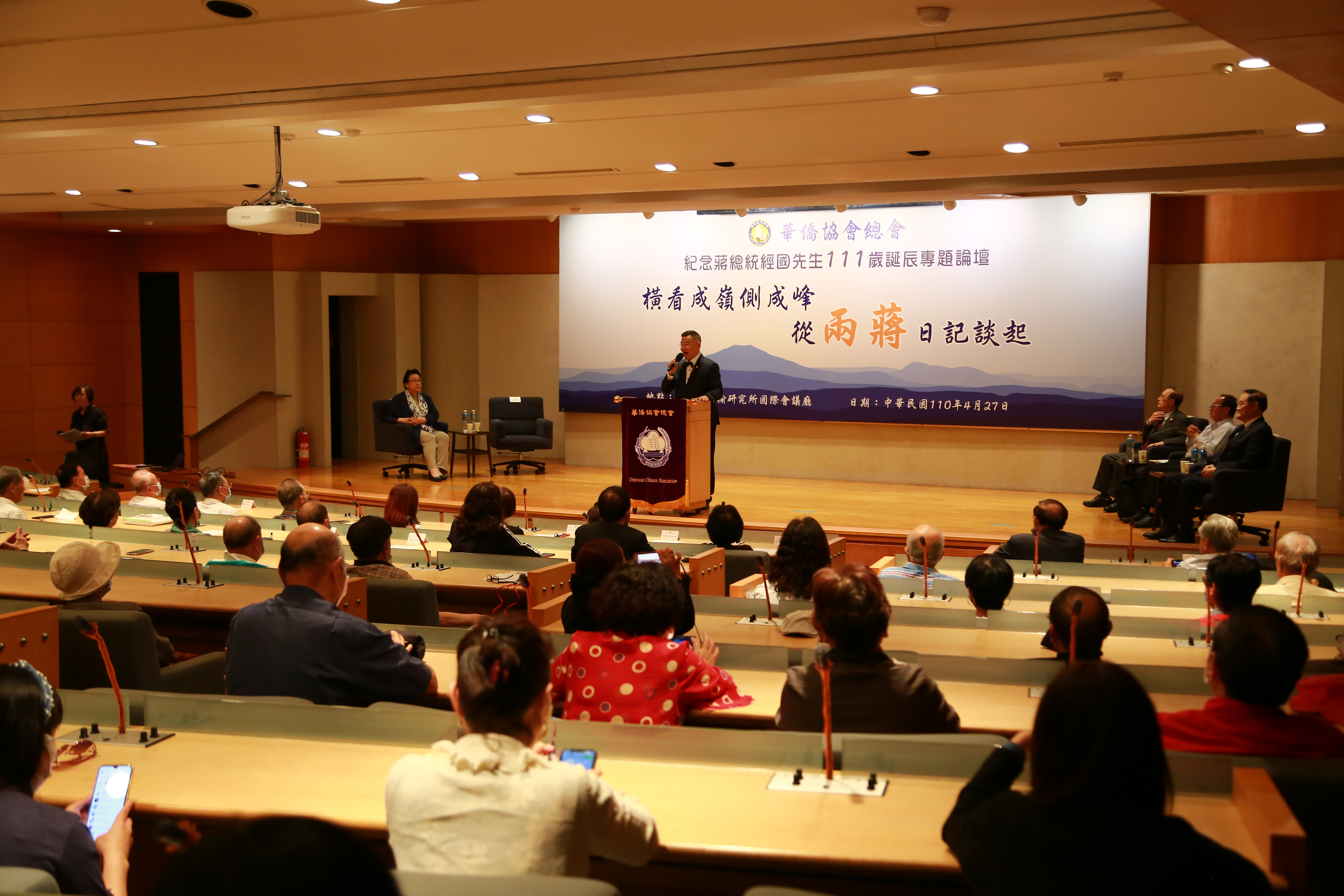 110年4月27日為蔣總統經國先生111歲誕辰紀念日,為緬懷其對中華民國貢獻,本會特於當日舉辦「橫看成嶺側成峰─從兩蔣日記談起」專題論壇,林齊國理事長主持,會員及嘉賓一百五十餘人與會。司儀蘇靖雯秘書長掌控議程進度,節奏有序。