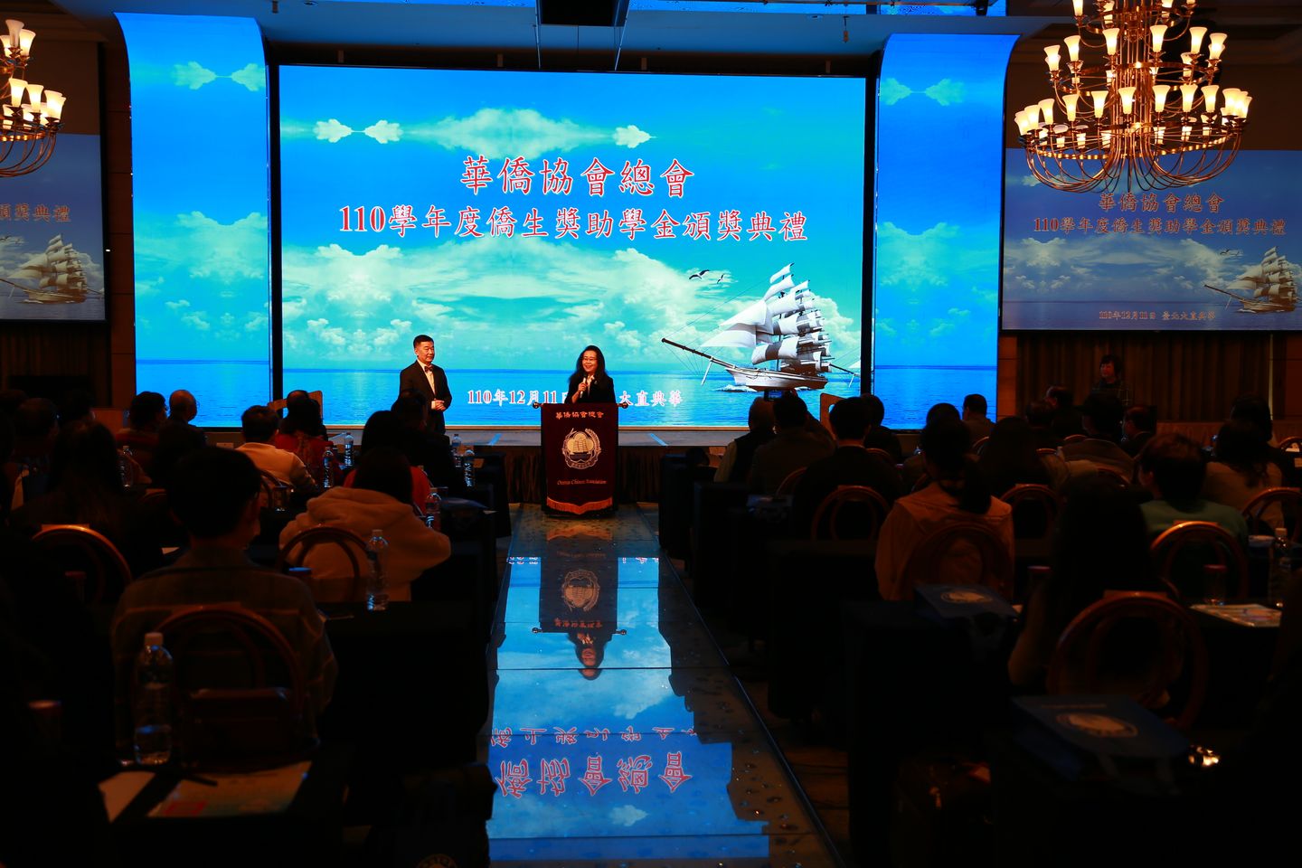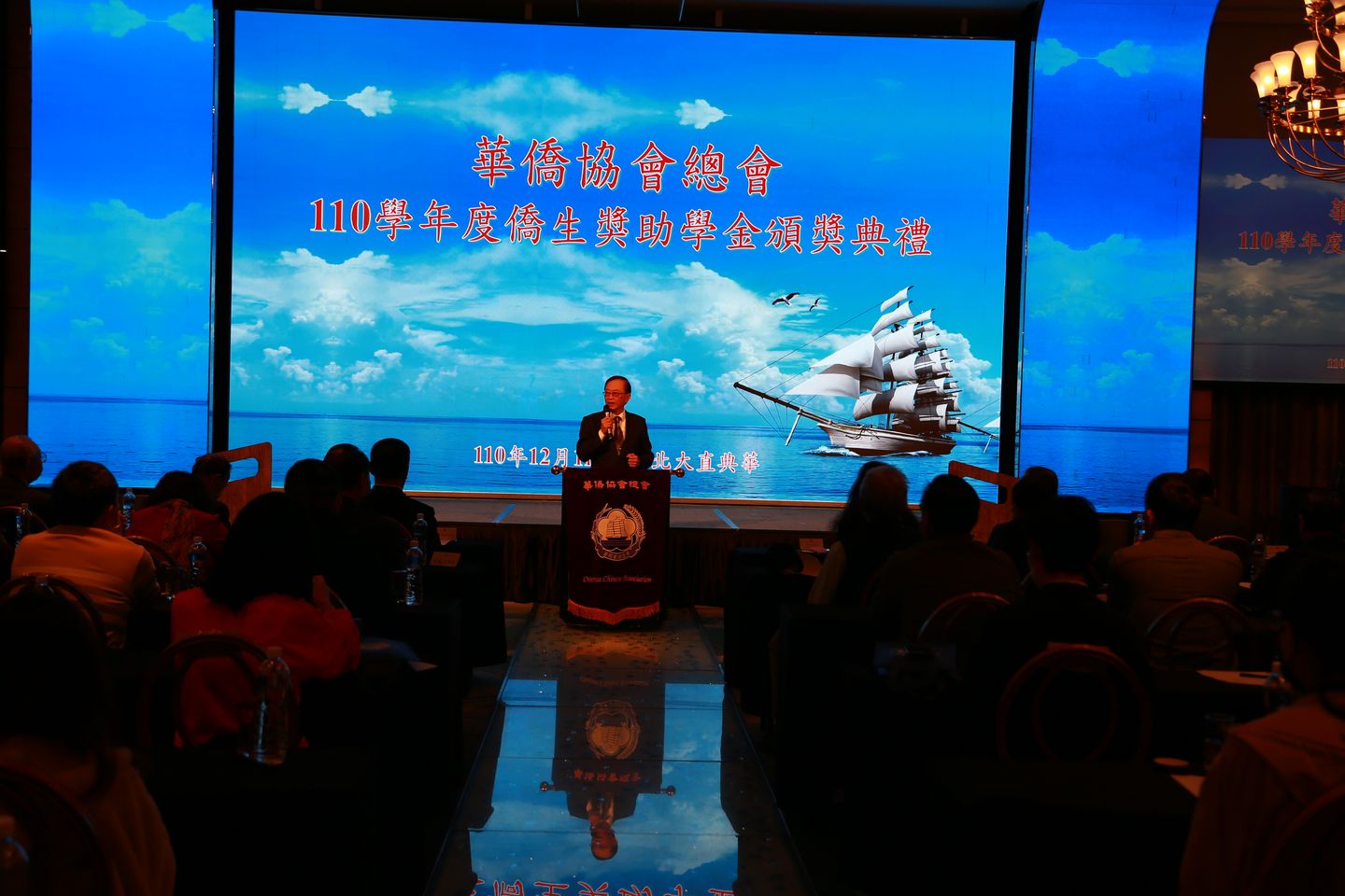110年12月10日,本會假臺北市大直典華旗艦店,舉行110學年度僑生獎助學金頒獎典禮暨專題演講,計有獲獎僑生、僑委會吳郁華處長、本會理監事及留臺校友會等一百一十位出席,理事長林齊國主持。