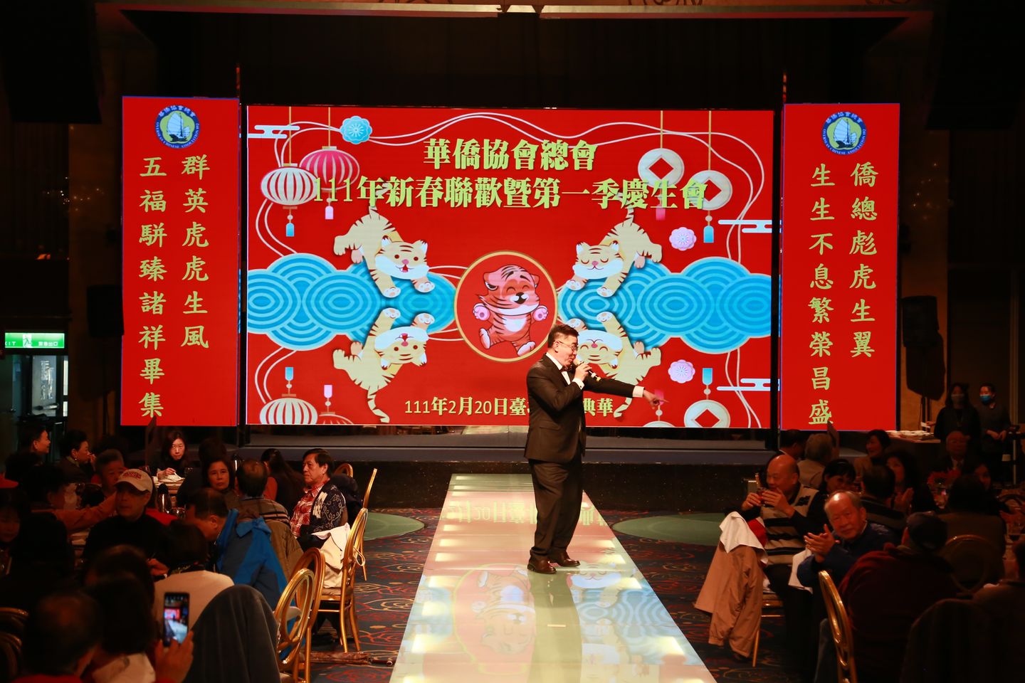 會員大會結束,新春聯歡會暨第一季慶生會隨即登場,邀請僑務委員會徐佳青副委員長以貴賓身分和大家歌唱同樂,穿插摸彩助興。當林齊國理事長抽出頭獎號碼時,聯歡會氣氛達到最高潮,就只有這位幸運兒呢。不過,未中獎者也有基本幸福獎可以領取,人人有紅包,普沾喜氣,未來的一年福氣強強滾。