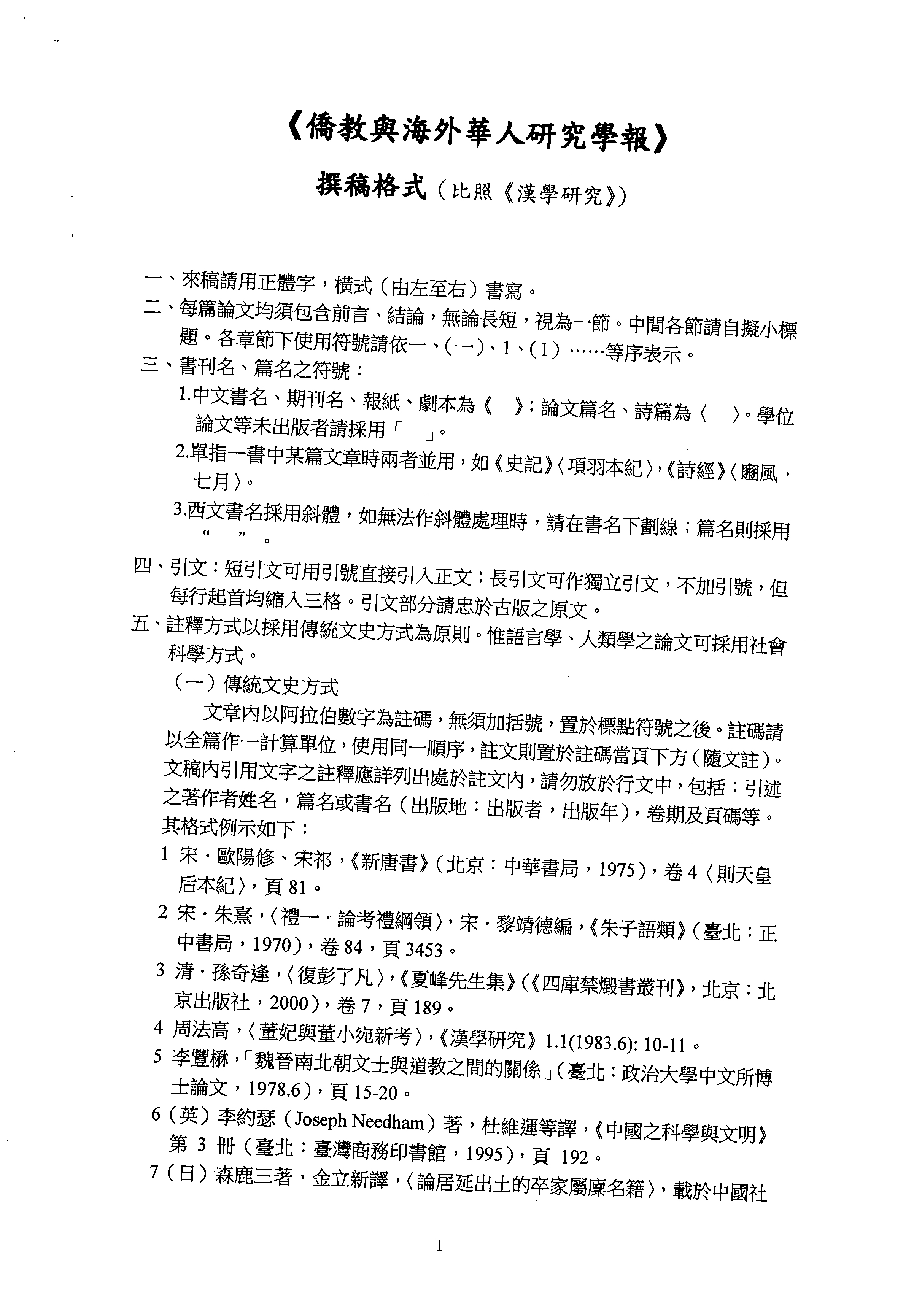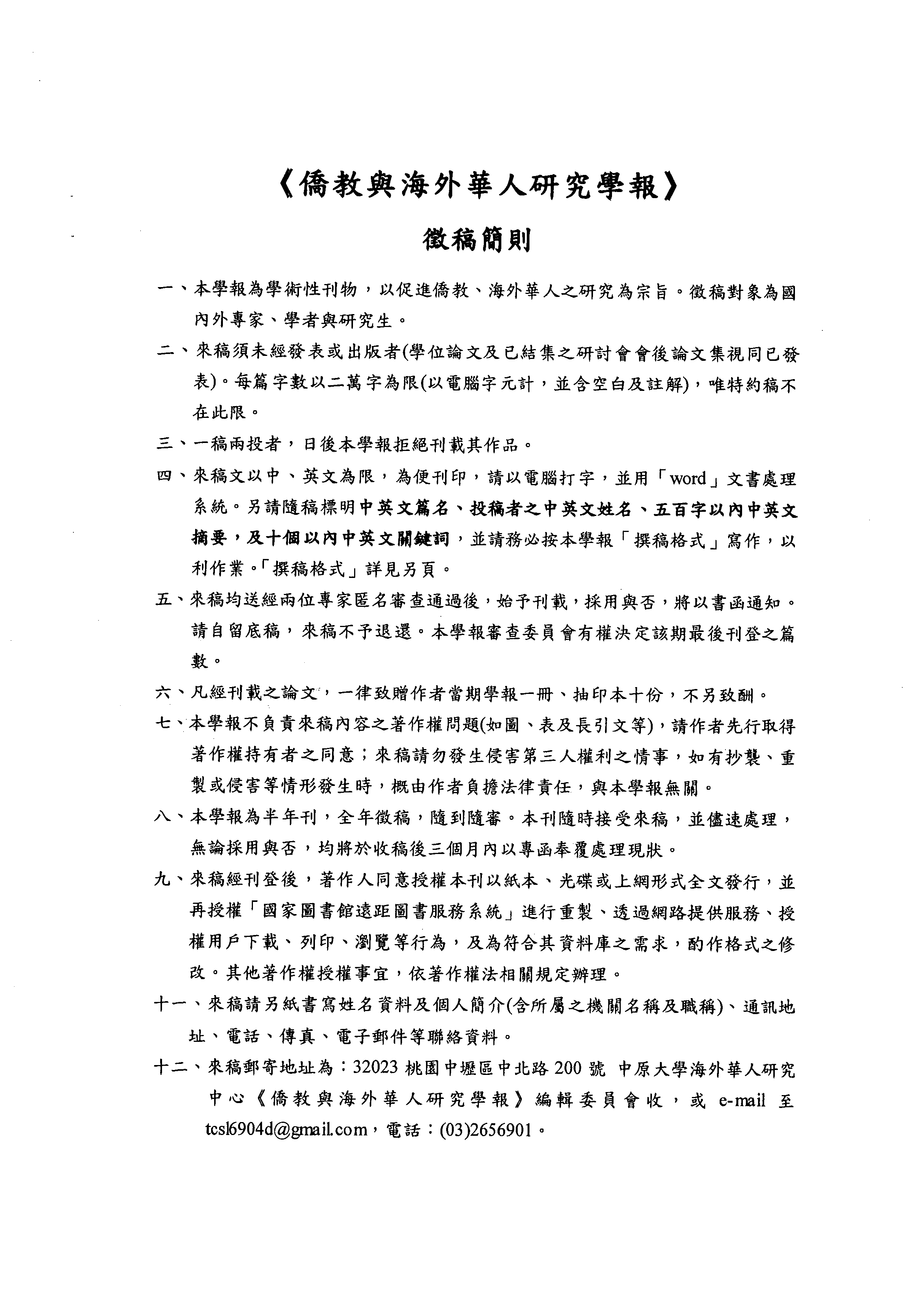 中原大學《僑教與海外華人研究學報》徵稿 歡迎投稿