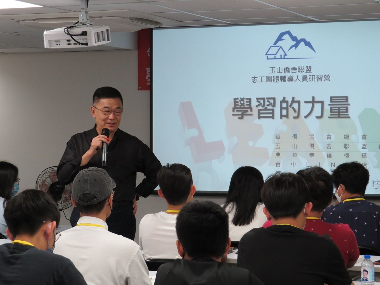 111年7月17日,玉山僑舍聯盟舉辦志工團體輔導人員研習營,該會理事長周永明邀請華僑協會總會理事長林齊國主講《學習的力量》,同大家分享。參與研習者係23位僑生,將成為玉山僑舍聯盟推展會務的骨幹。
