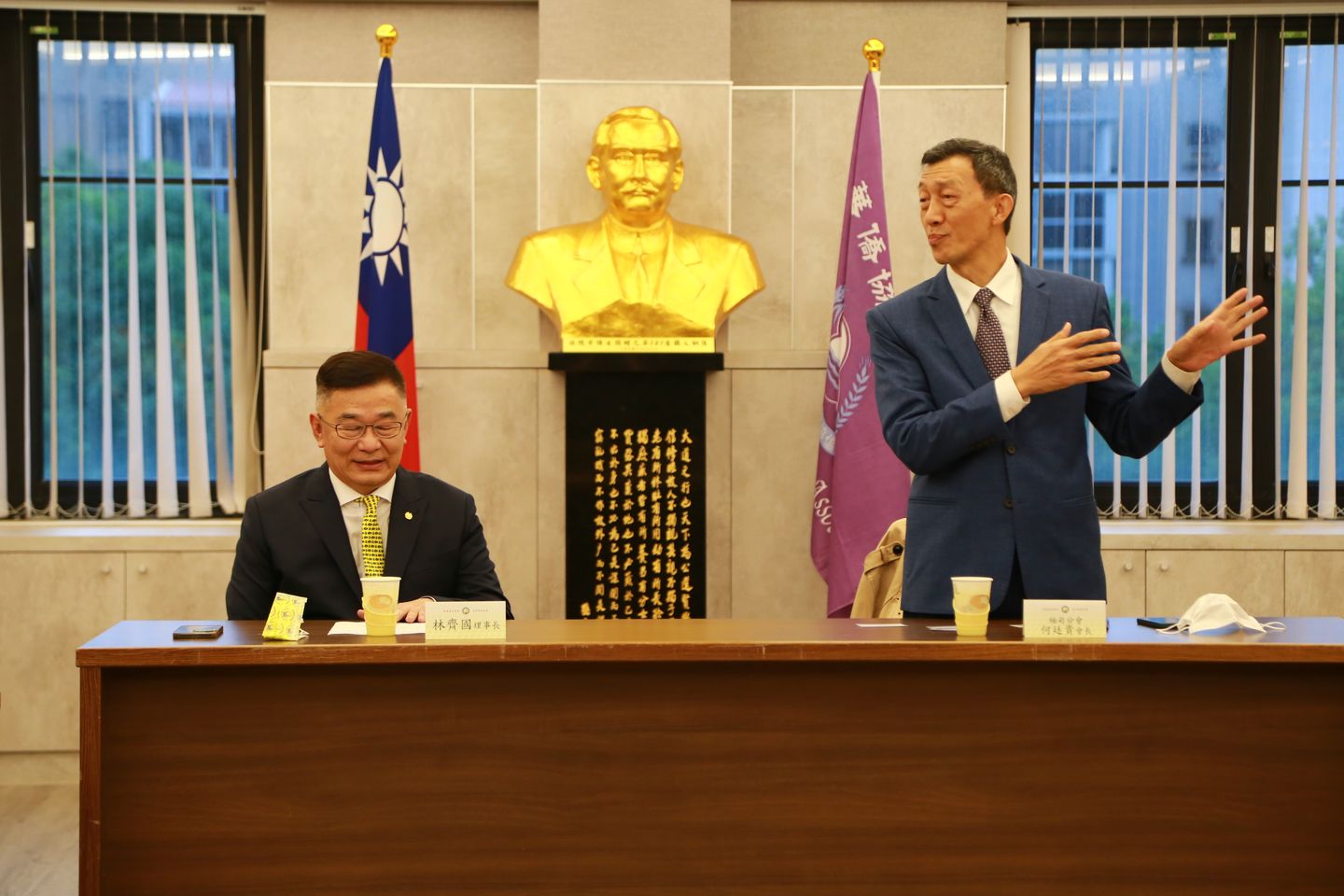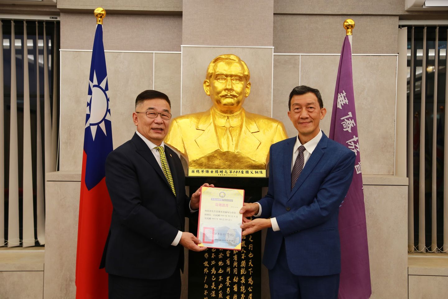 何廷貴甫於111年11月1日接任會長,林理事長致贈當選證書道賀,並期會務蒸蒸日上。何會長面邀林理事長適時率團訪問緬甸,拜訪當地僑社及華校。