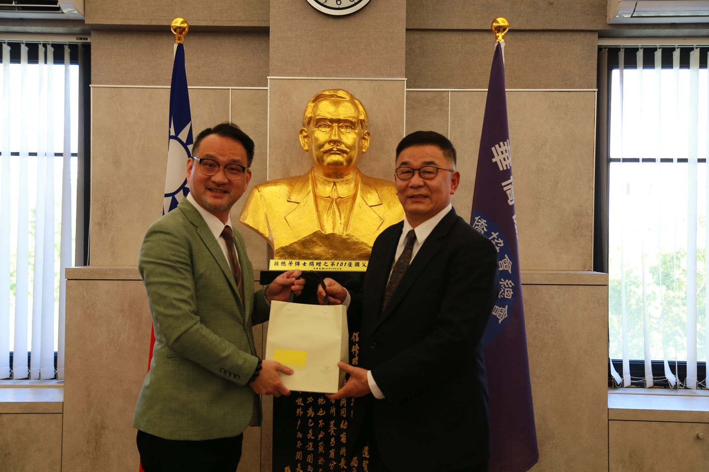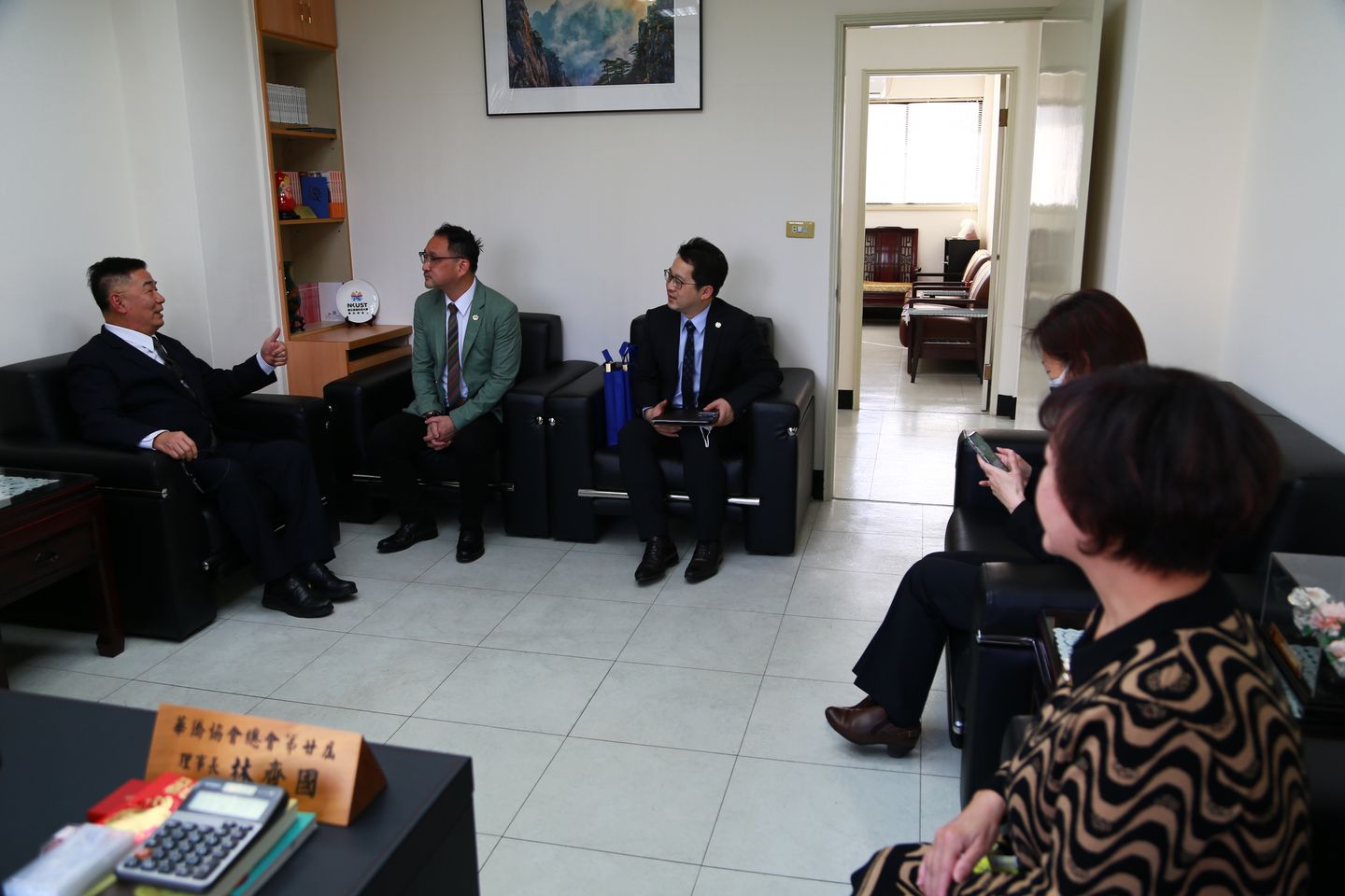 112年3月6日,僑務委員會阮昭雄副委員長蒞訪,林齊國理事長偕蘇靖雯秘書長接待。
