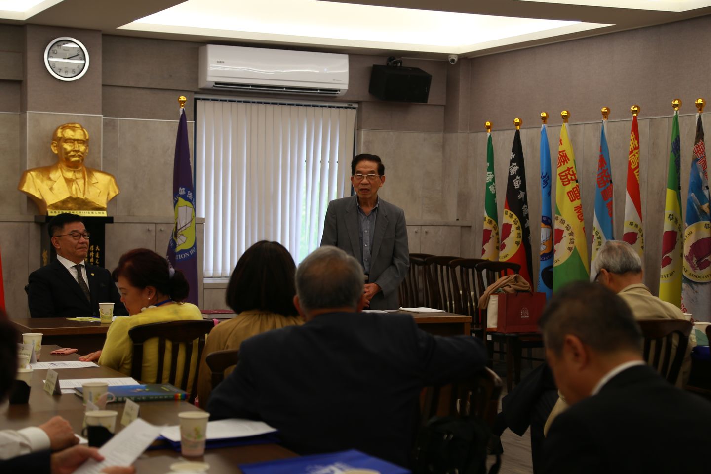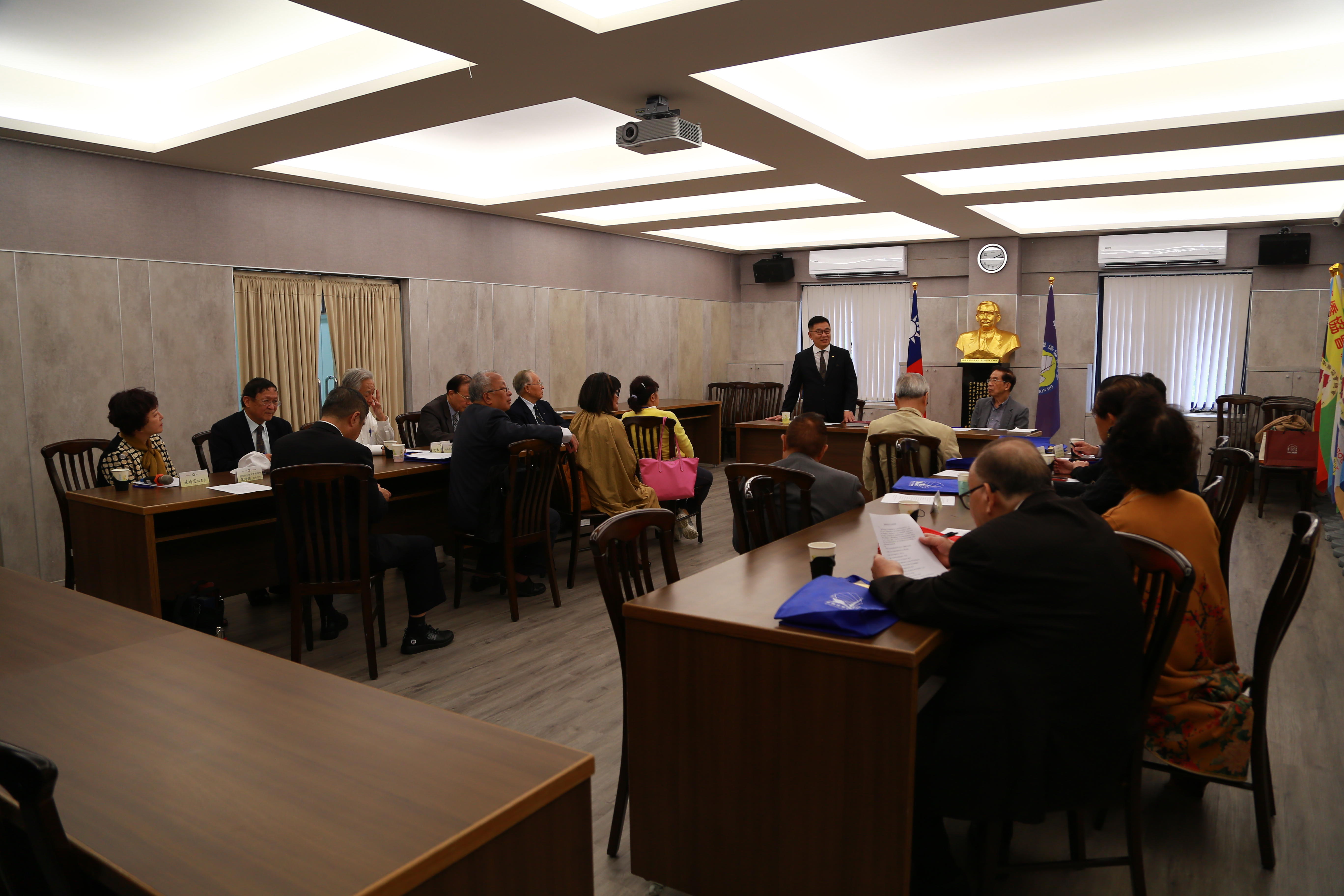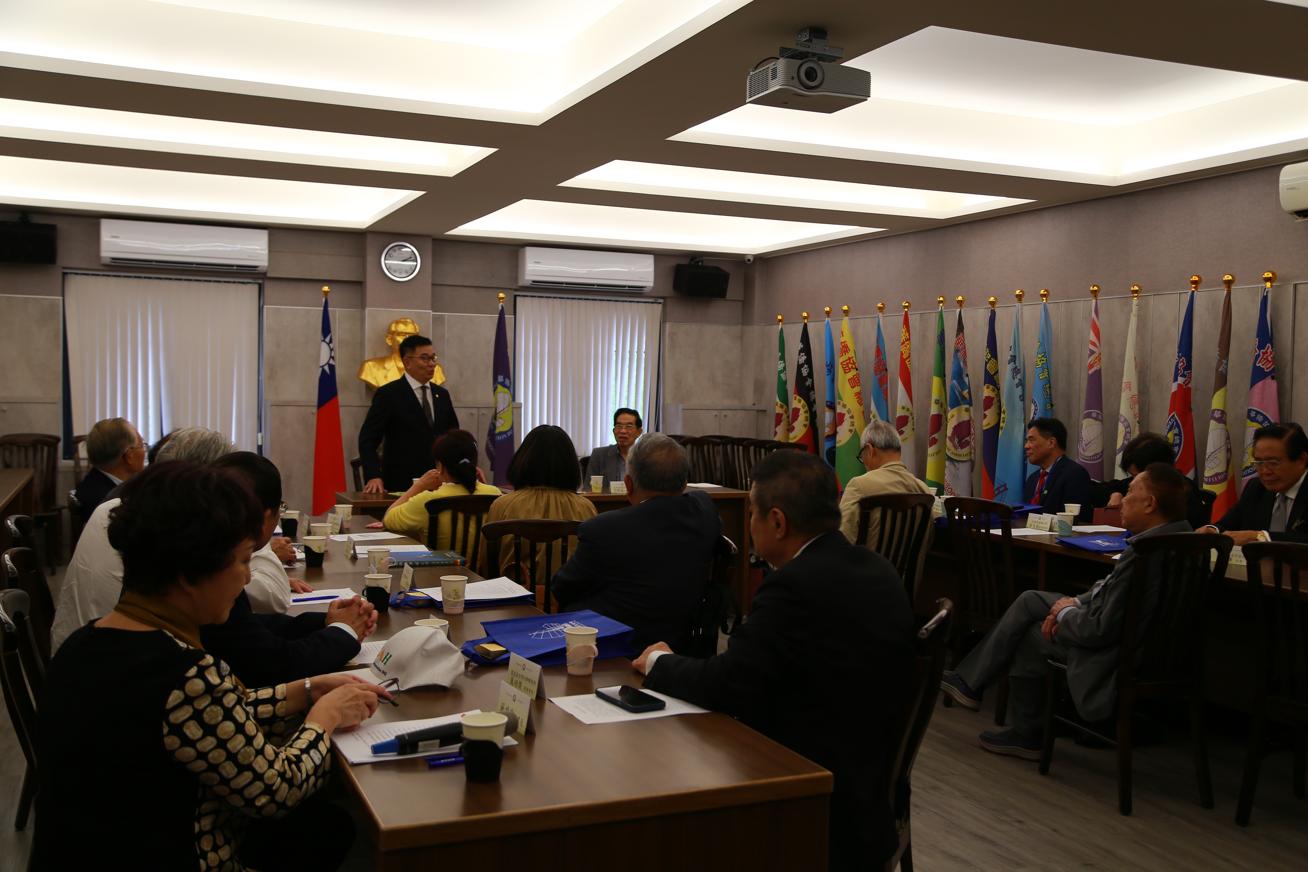 112年4月25日美國僑學界和平之旅訪臺團,團長范揚盛偕王張令瑜、李蔚華、周成棟、周莉音、周賢孟、金志遠、張學海、陳建芬、黃秀梅、黃登亮、萬培傑、謝宗煌等蒞訪,林齊國理事長偕常務理事伍世文、藺斯邦、沈大川、理事陳北機及秘書長蘇靖雯等接待。