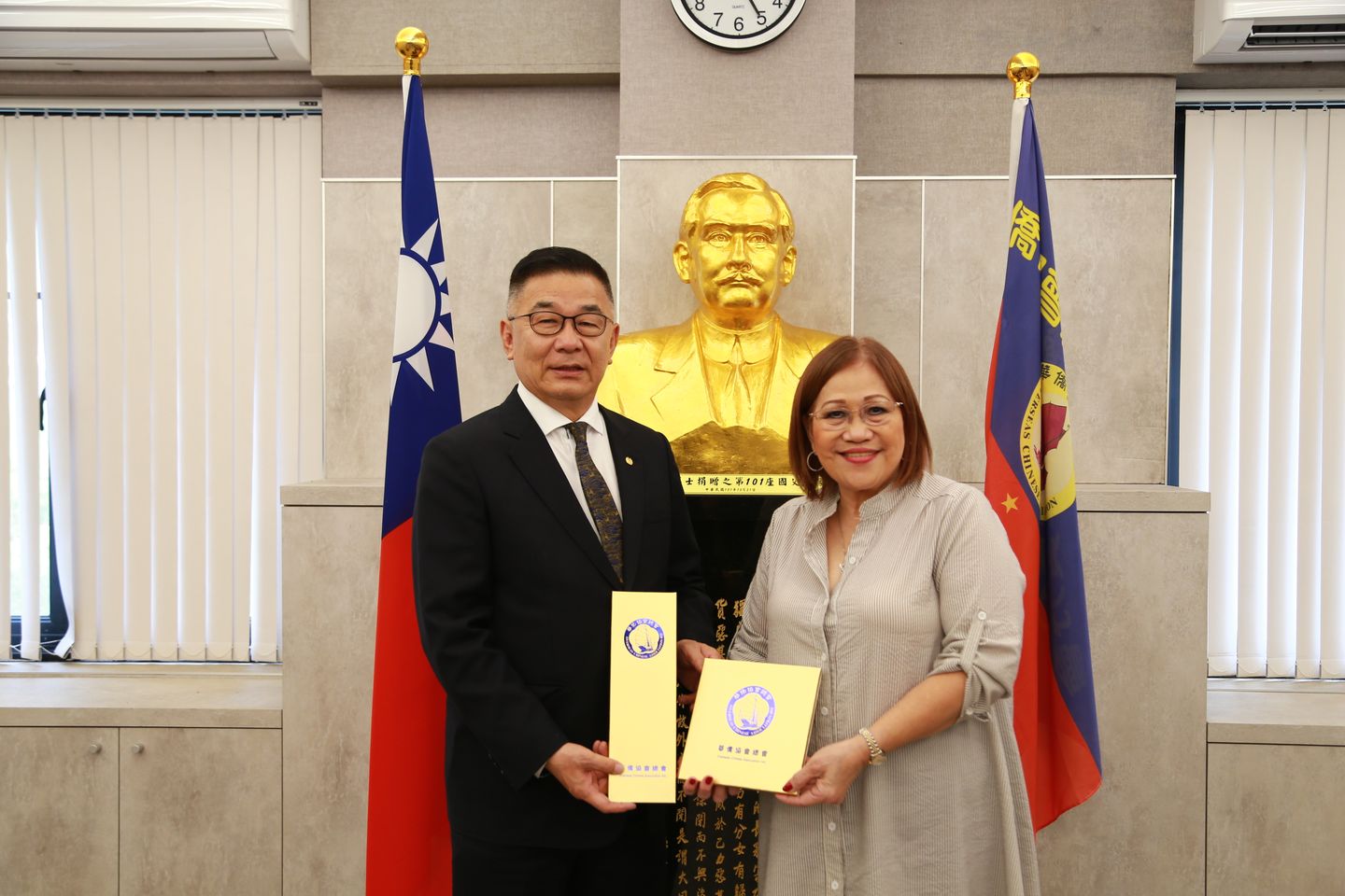 112年5月22日,本會菲律賓分會林淑玲會長、蔡聰敏秘書長蒞訪,林理事長偕蘇秘書長接待。