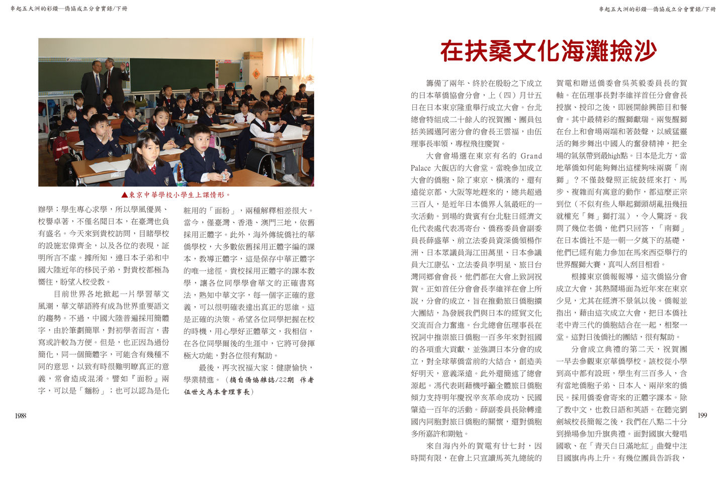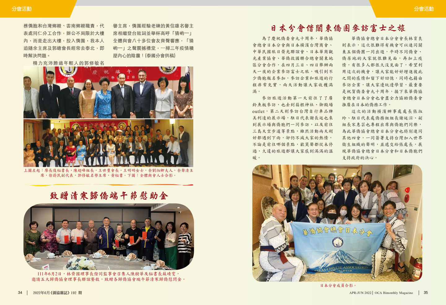林會長也提到,這次接下會長任務,感到責任重大,他會持續秉持協會的理念,支持中華民國、聯合海外僑胞互相合作,全力協助發展華僑事業,同時也會發揮最大的服務精神,拓展日本分會的會務。