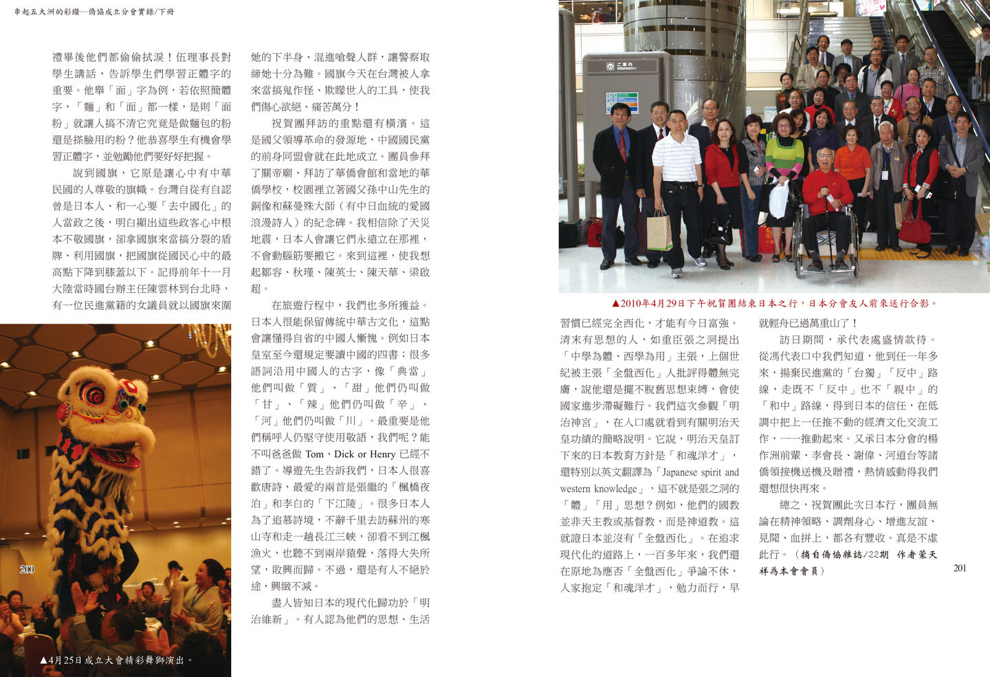 交接儀式中,眾人也在名譽會長李維祥的帶領下,一同追悼仙逝的會長李懋鑌,同時也感謝最高顧問林學明發揮善心,代表日本分會捐贈紅外線體溫檢測儀器給日本各地,並由林顧問帶領乾杯儀式,為之後的餐會拉開序幕,眾人也利用難得的聚會聯繫感情,活動尾聲除了由資深顧問河道台負責閉幕詞,並帶領眾人一同高歌,為活動畫上圓滿句點。