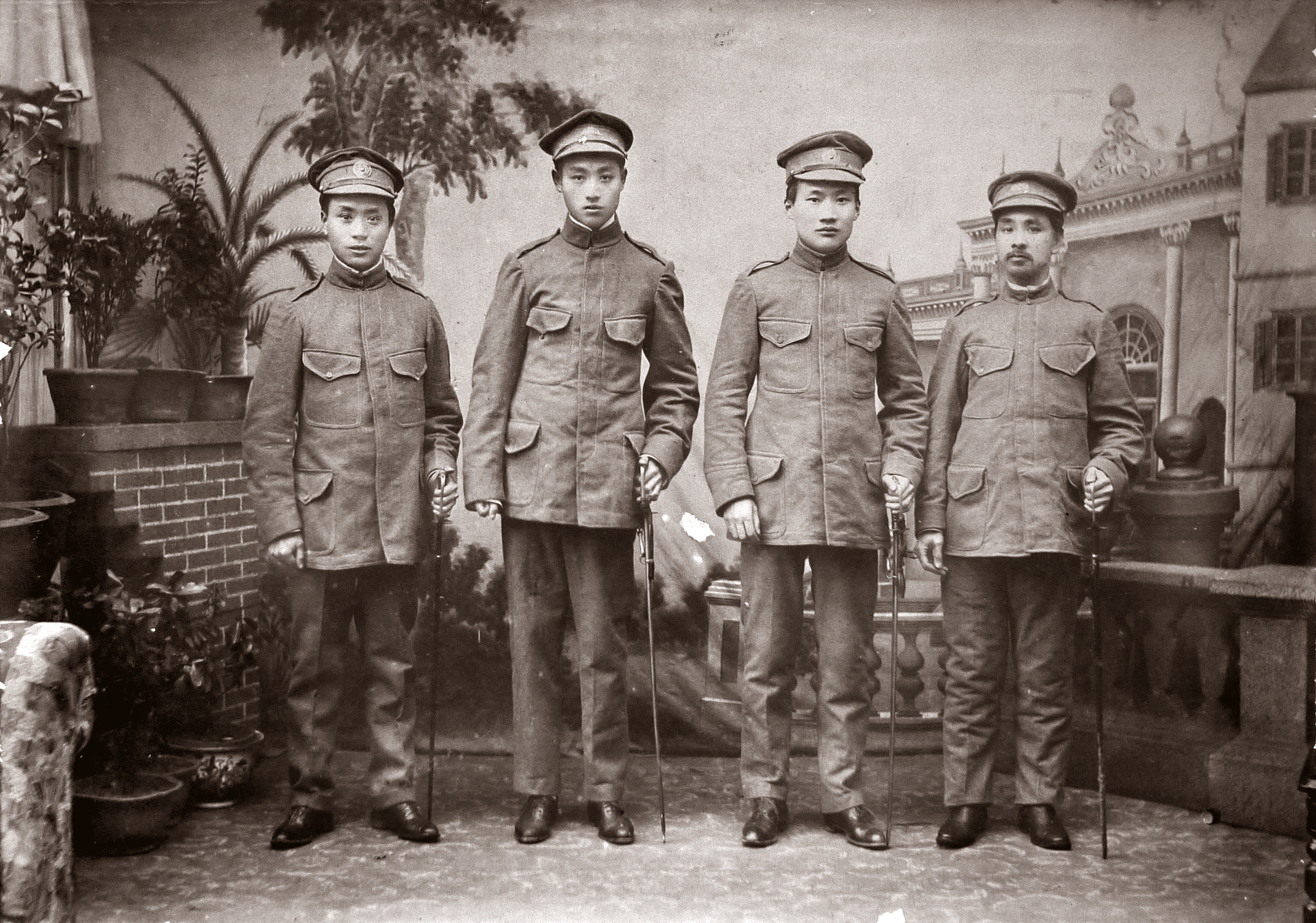 民國前二年吳鐵城(右二)著革命服與林森(右一)合影