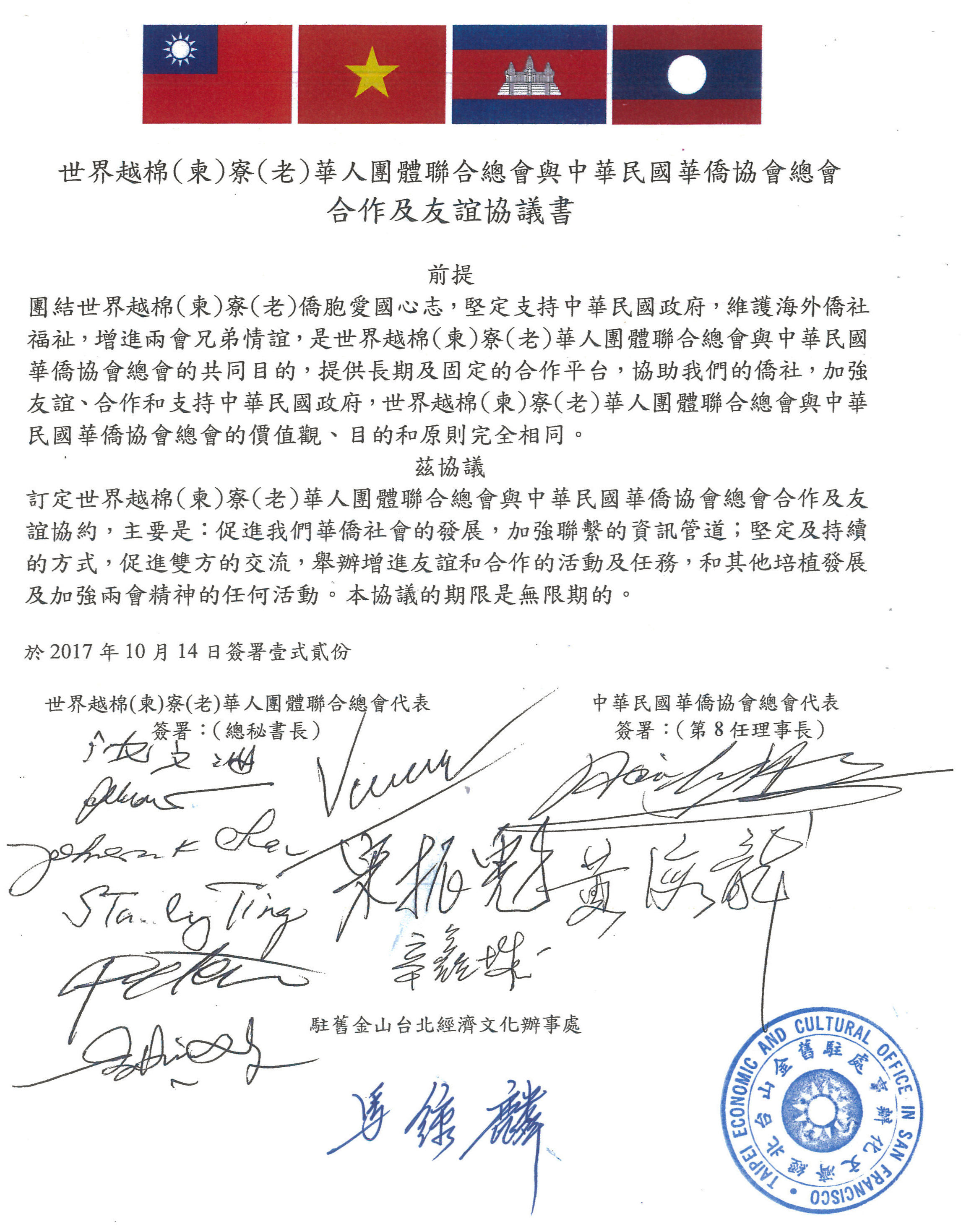 世界越棉寮華人團體聯合總與本會簽署合作及友誼協議書
