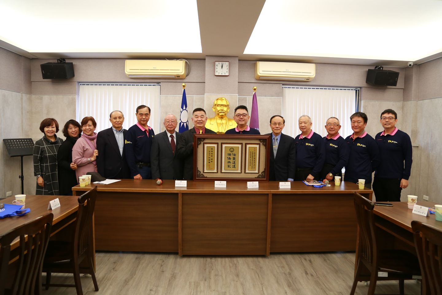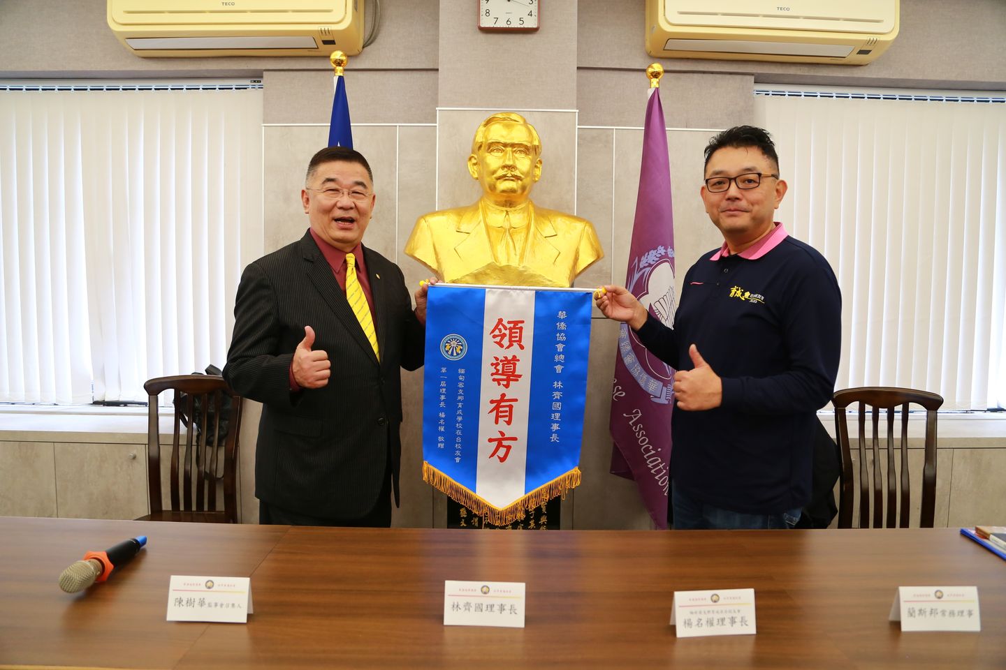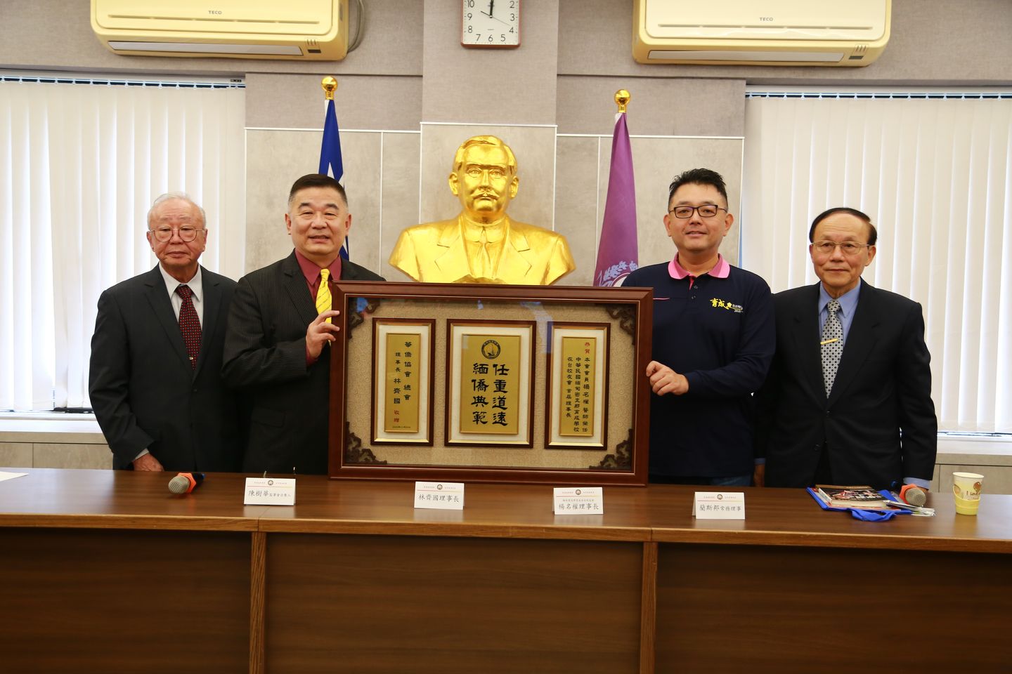 林理事長致贈楊名權理事長當選匾額。
