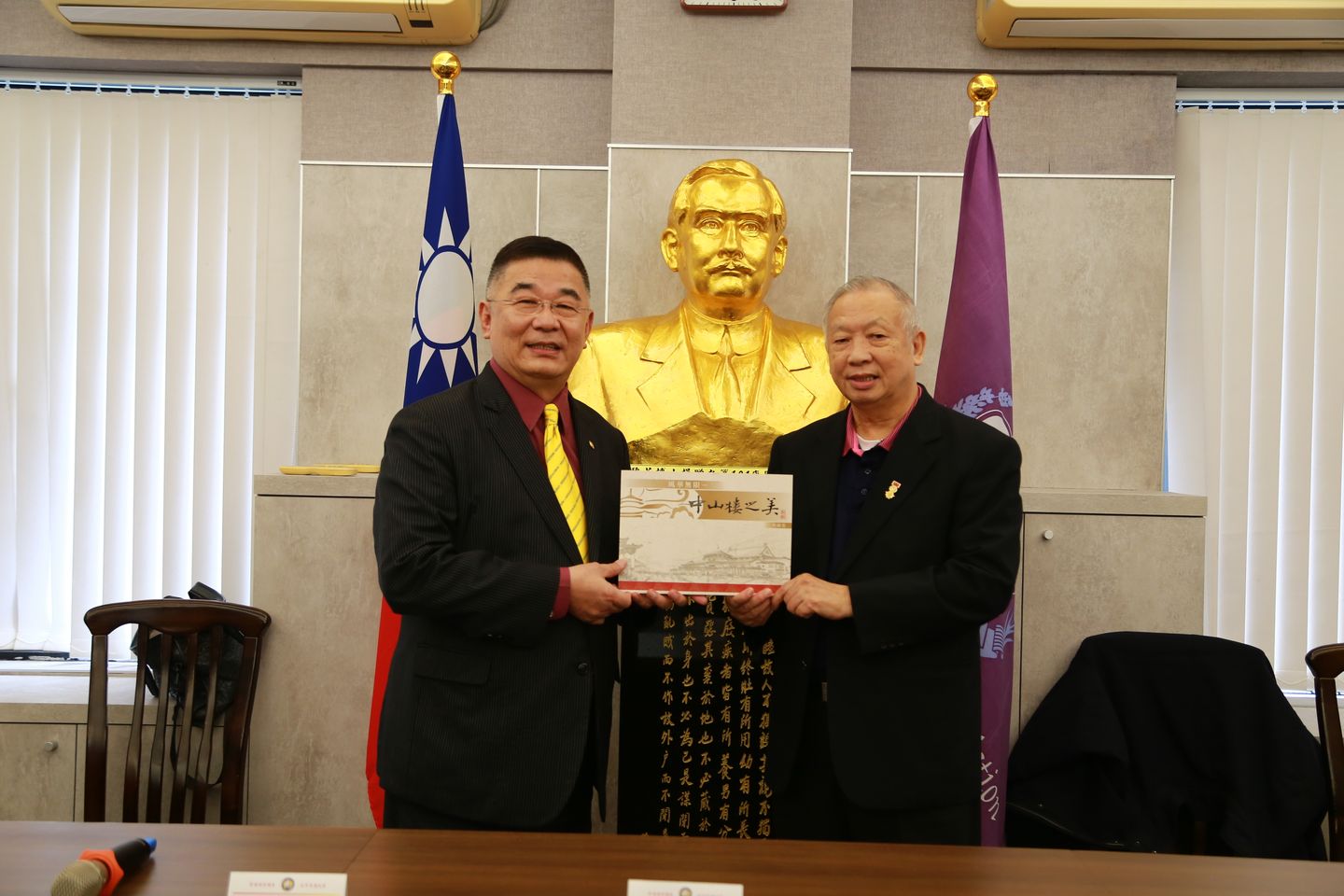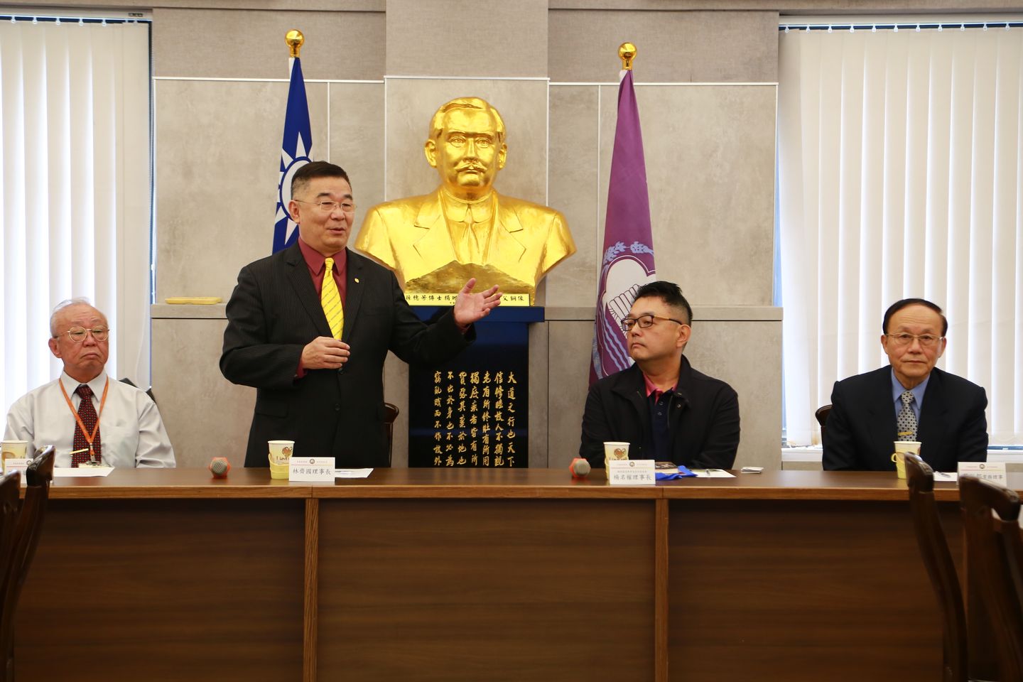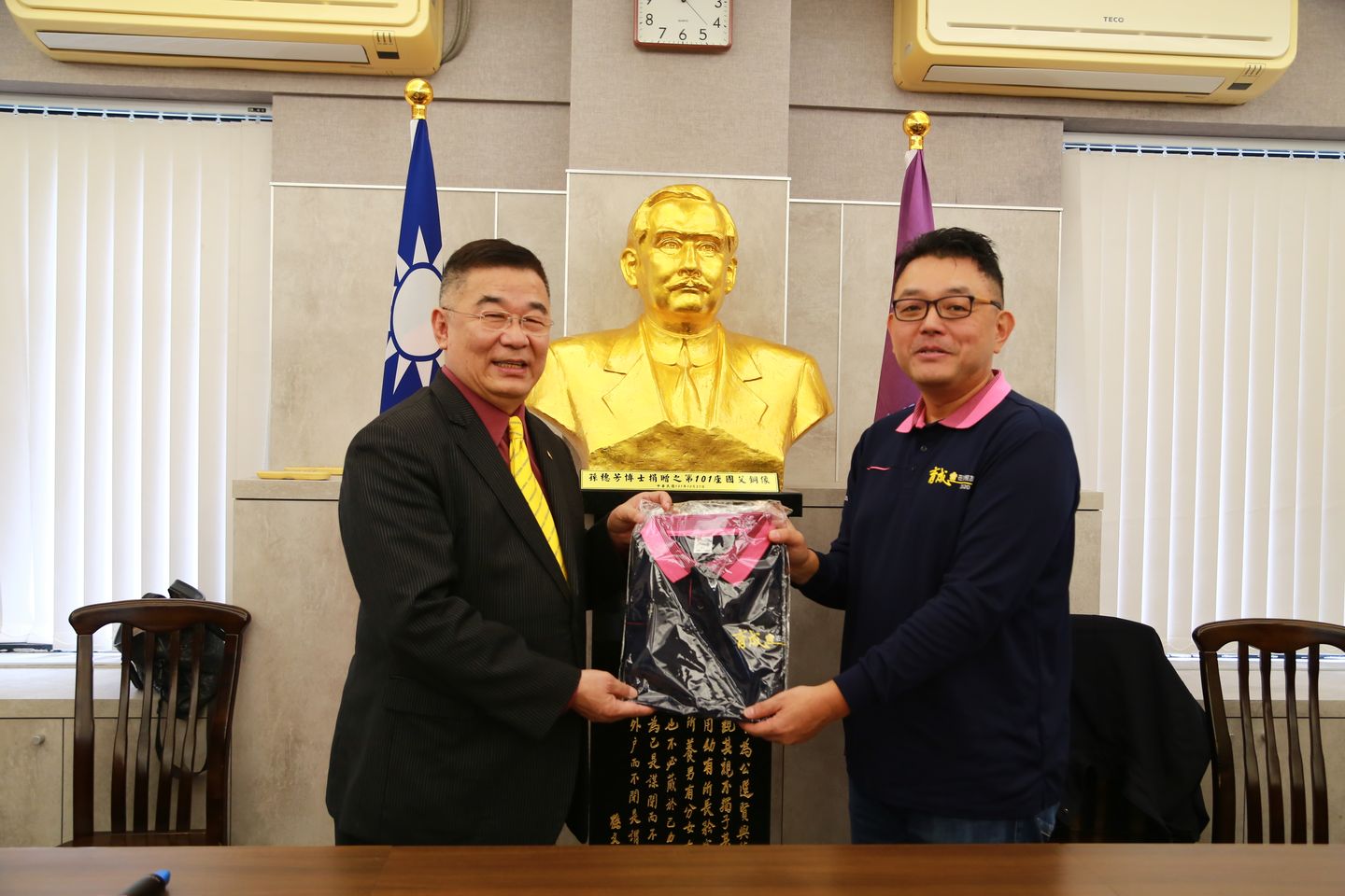 林理事長致贈楊名權理事長當選匾額。