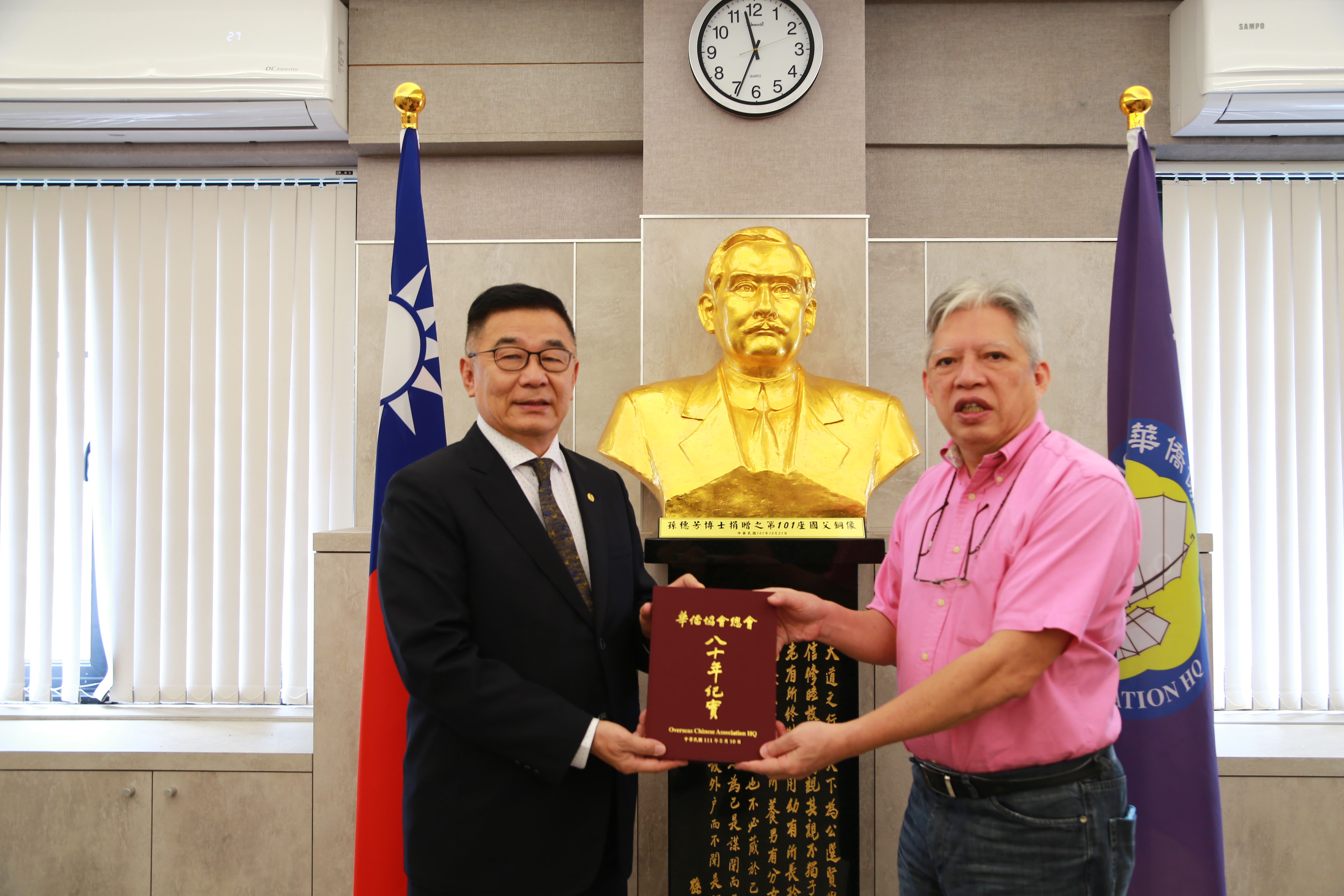 112年5月15日,本會巴拉圭分會監事長暨東方市中華會館主席司徒梓明蒞訪,林齊國理事長偕蘇靖雯秘書長接待。