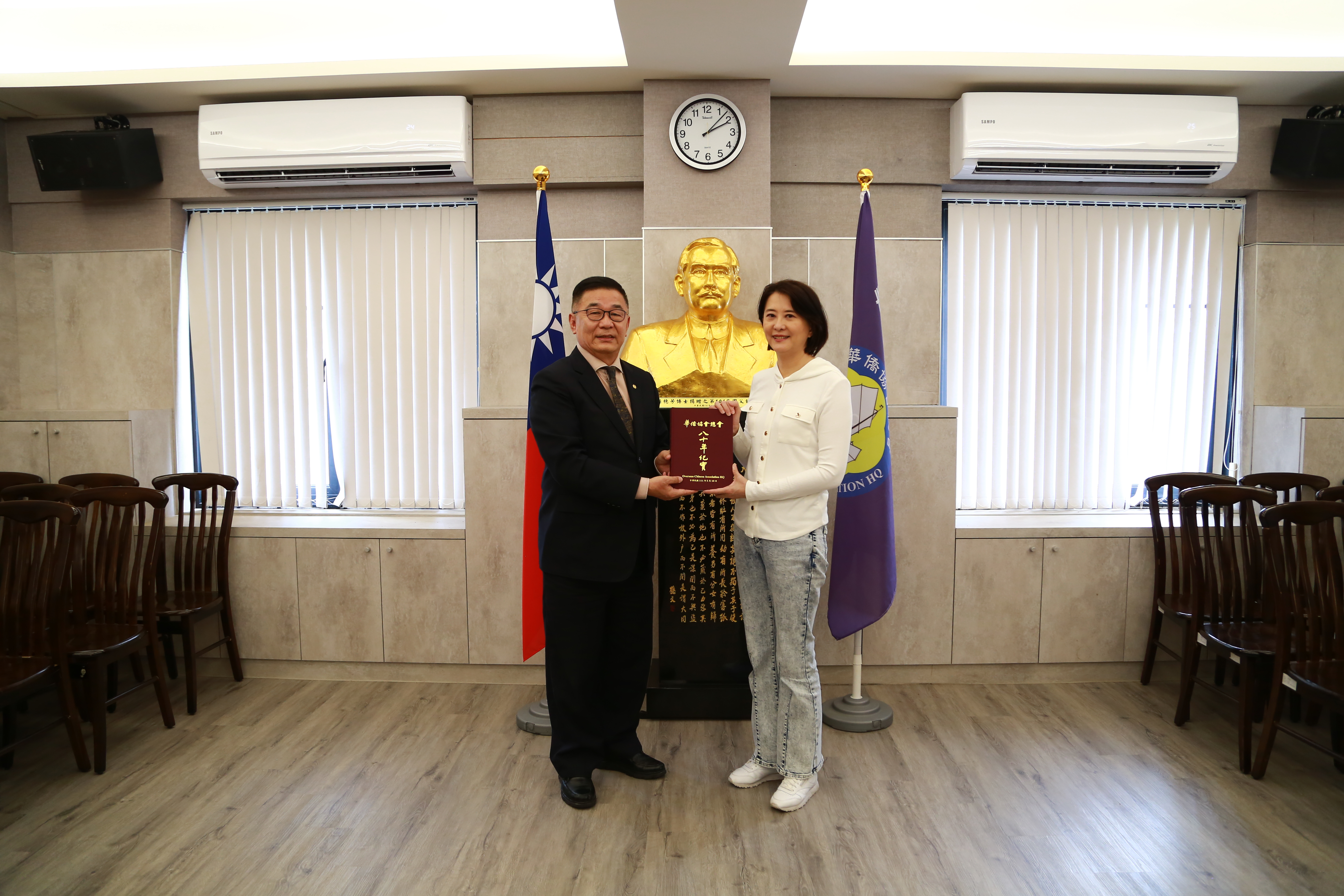112年6月1日,立法委員王鴻薇女士蒞訪,林理事長偕蘇秘書長接待。