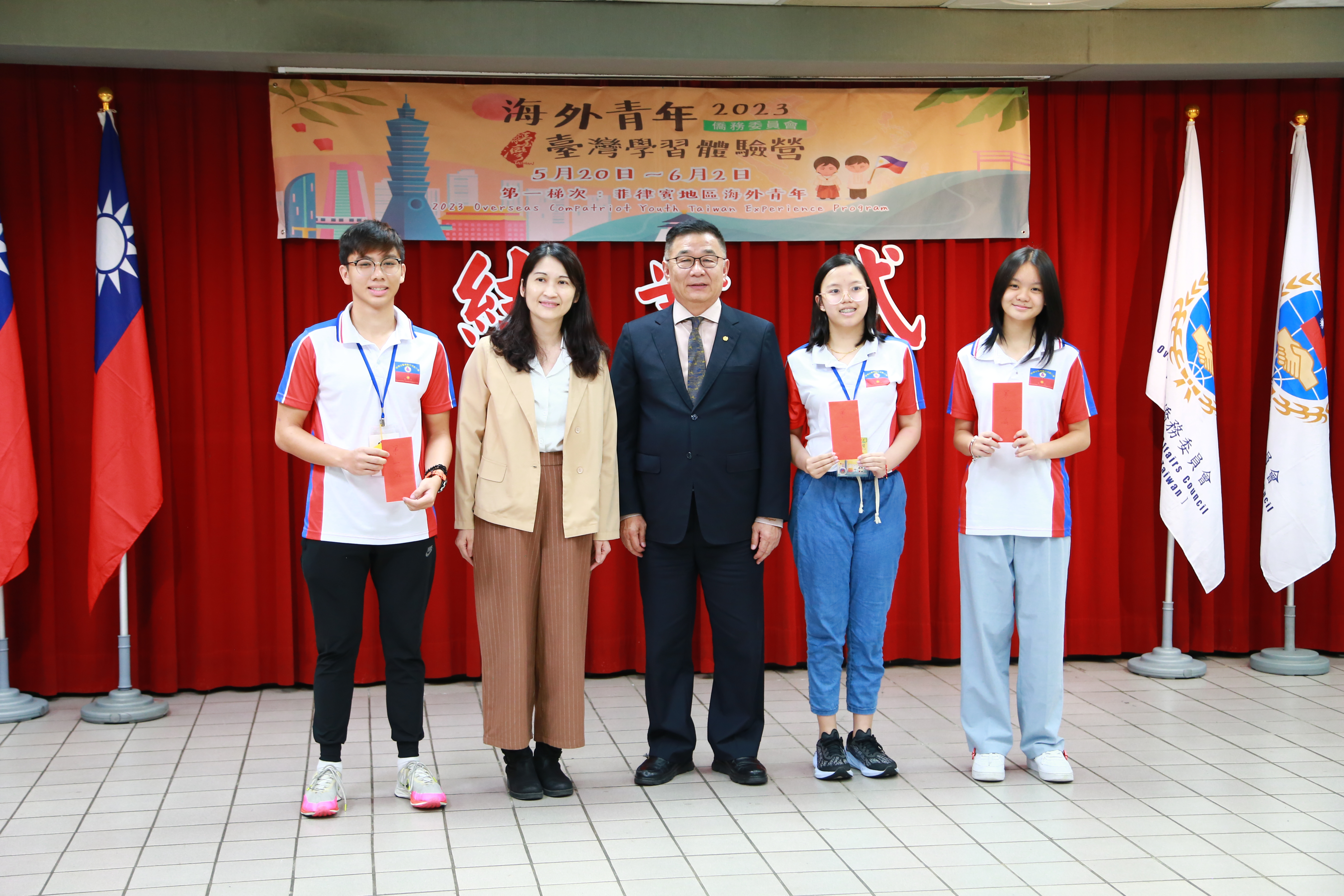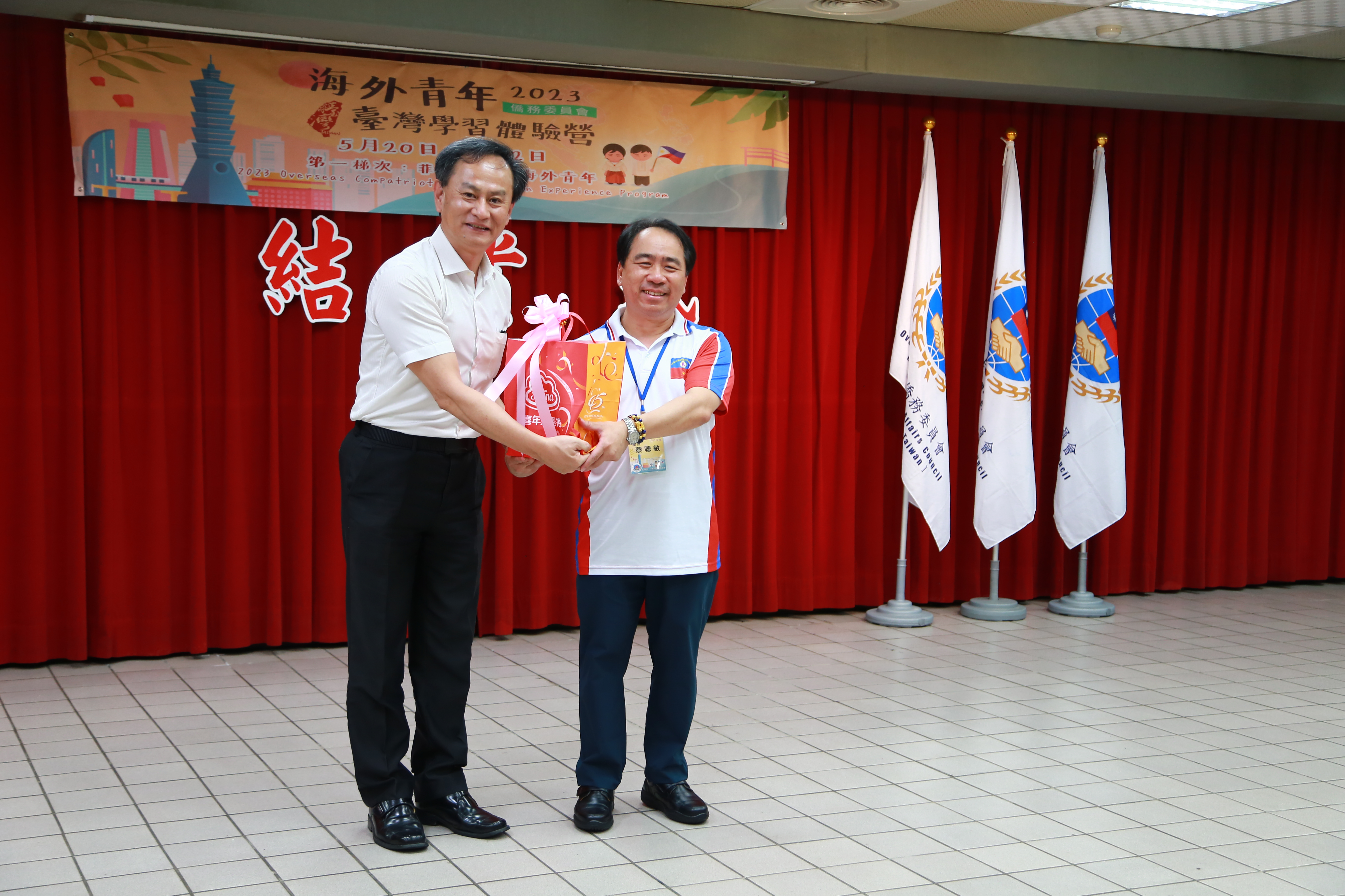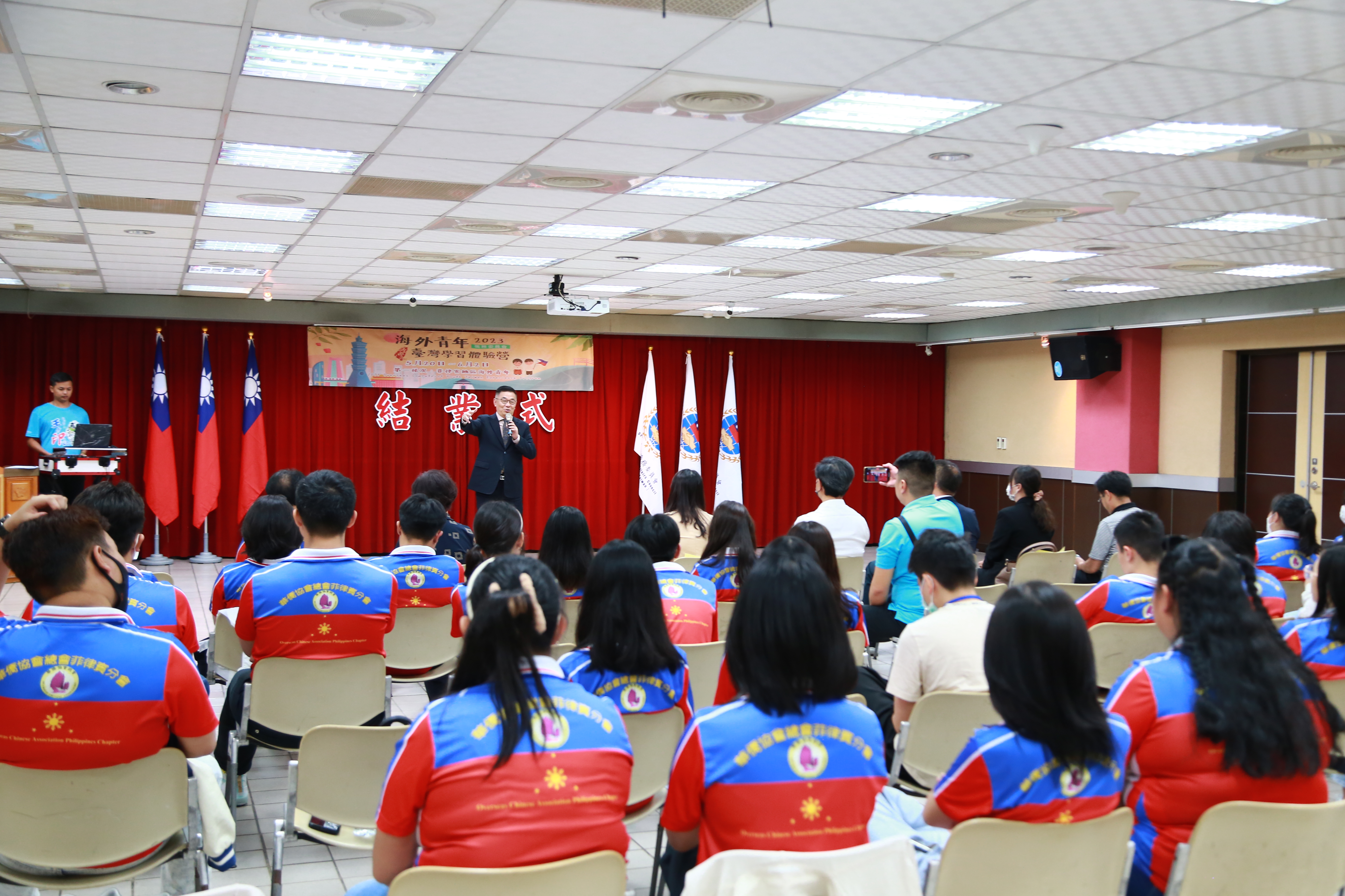 112年6月1日,林理事長偕蘇秘書長出席在劍潭青年活動中心舉行之「菲律賓青年臺灣學習體驗營」結業式。本活動係由本會菲律賓分會負責,邀集菲國青年華裔子弟來臺體驗臺灣特有文化。