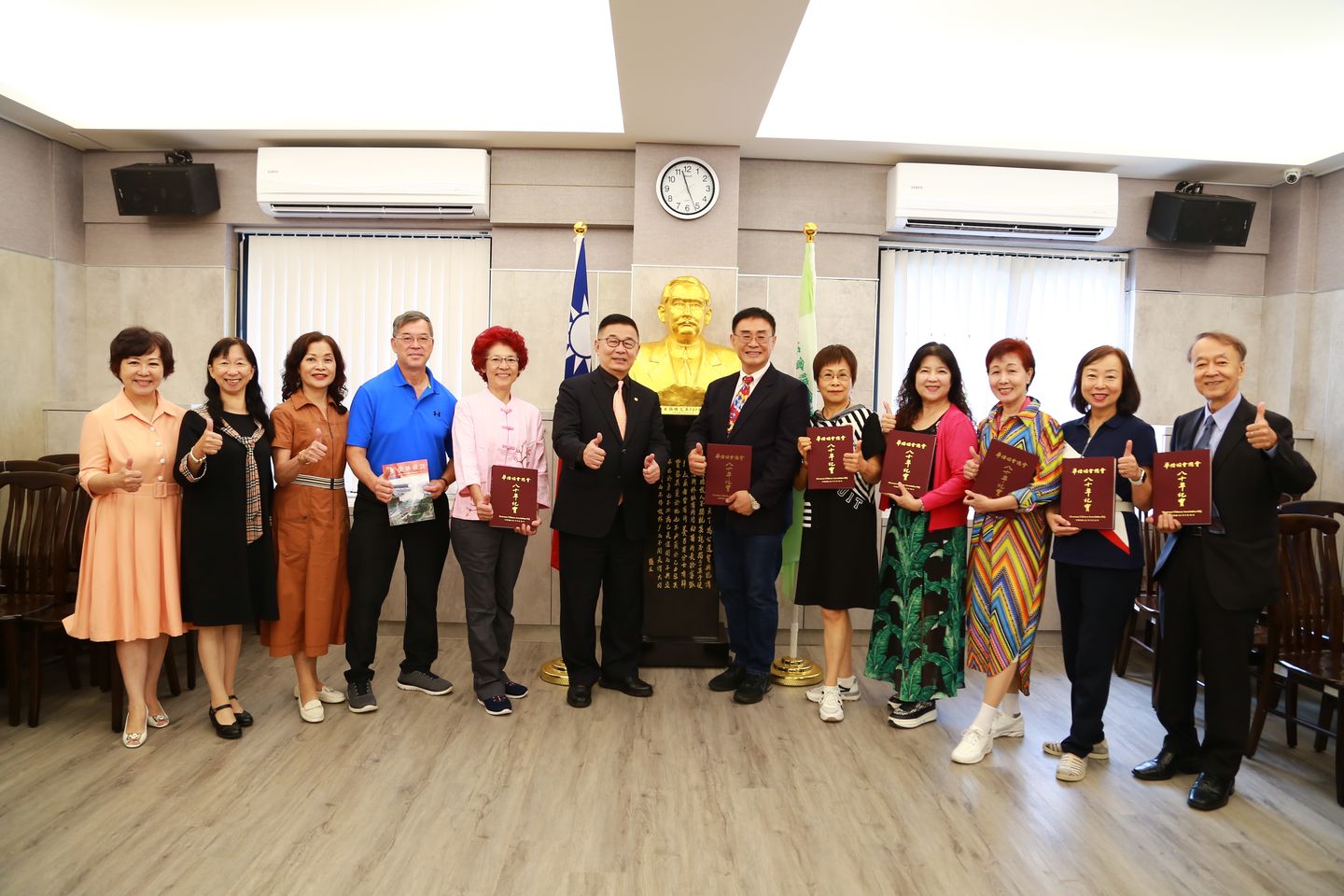 112年10月4日,本會邁阿密分會王雲福會長、會員申蓉聲、李梅蘭,紐約分會劉大明、黃繼榮伉儷,雪梨分會賴文娟會長,華盛頓分會羅香齡,休士頓分會李莉穎等八位蒞訪,林齊國理事長偕温淑芬理事、袁金玉監事及蘇靖雯秘書長接待。