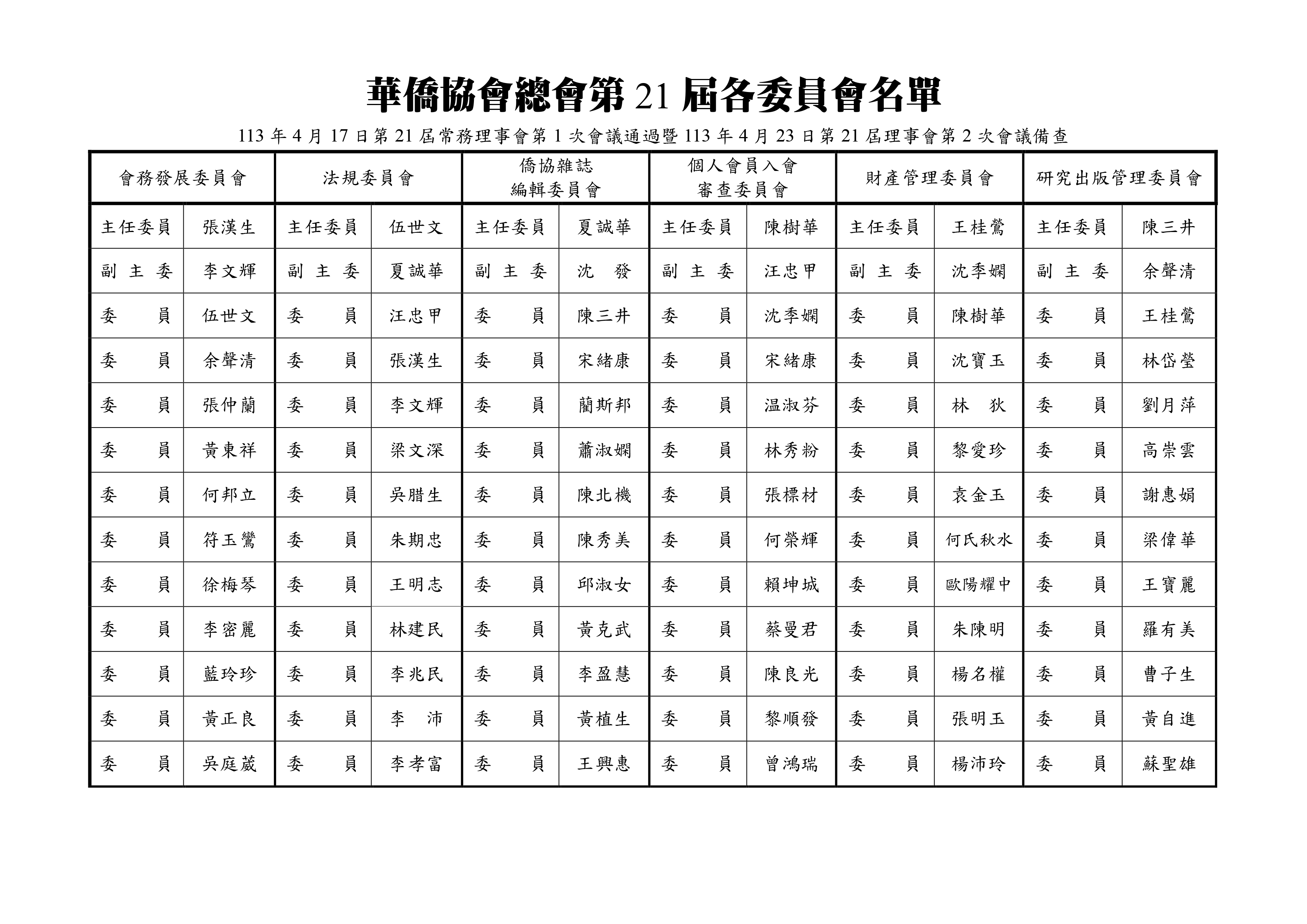 華僑協會總會(僑總)第21屆理事監事芳名錄